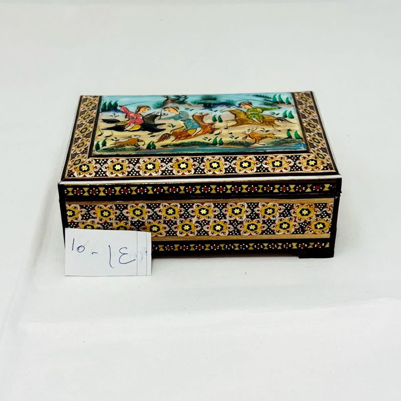 محصول بسیار زیبا و با کیفیت کاردست هنرمندان اصفهانی بسیار مناسب جهت دکور و قراردادن وسایل و اشیا ،همچنین دادن هدیه در داخل آن،مناسب جهت جاجواهراتی و……درب لولایی و داخل مخمل کارشده به ابعاد درج شده