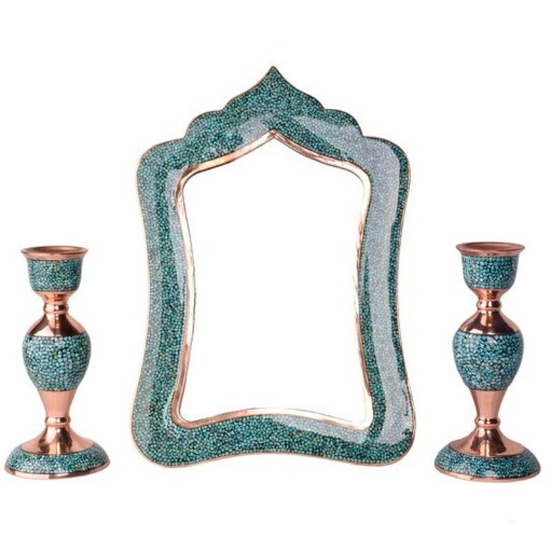 آینه شمعدان فیروزه کوبی متوسط تولید شده با سنگ های فیروزه نیشابور