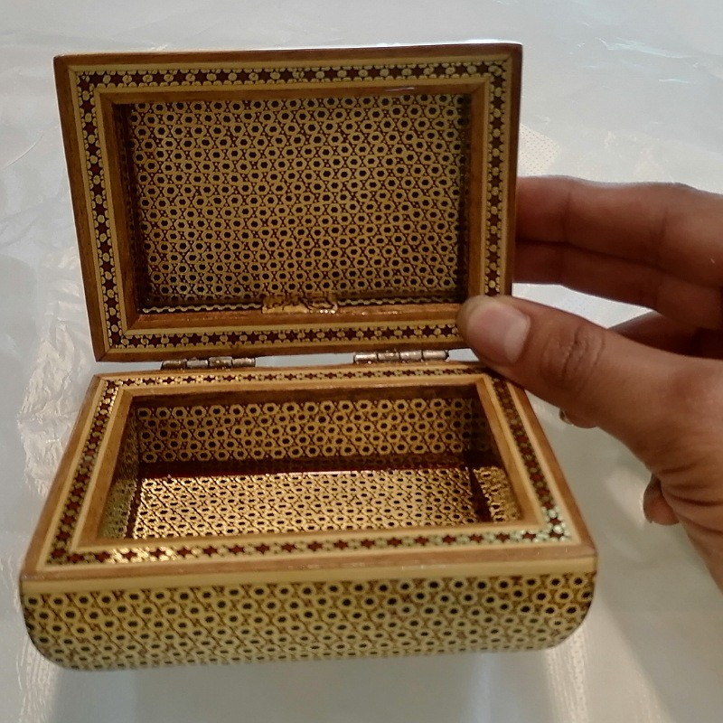 جعبه خاتم کاری مدل چوگان درب شیشه ای