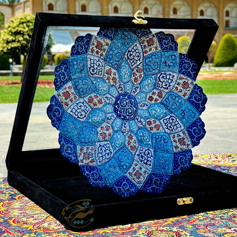 تابلو بشقاب میناکاری 20(29در29سانتیمتر) به همراه جعبه سنتی