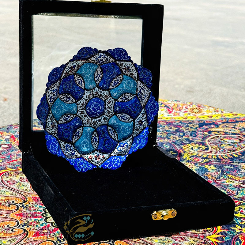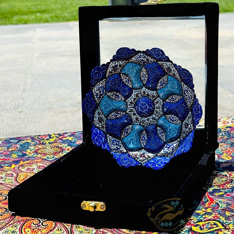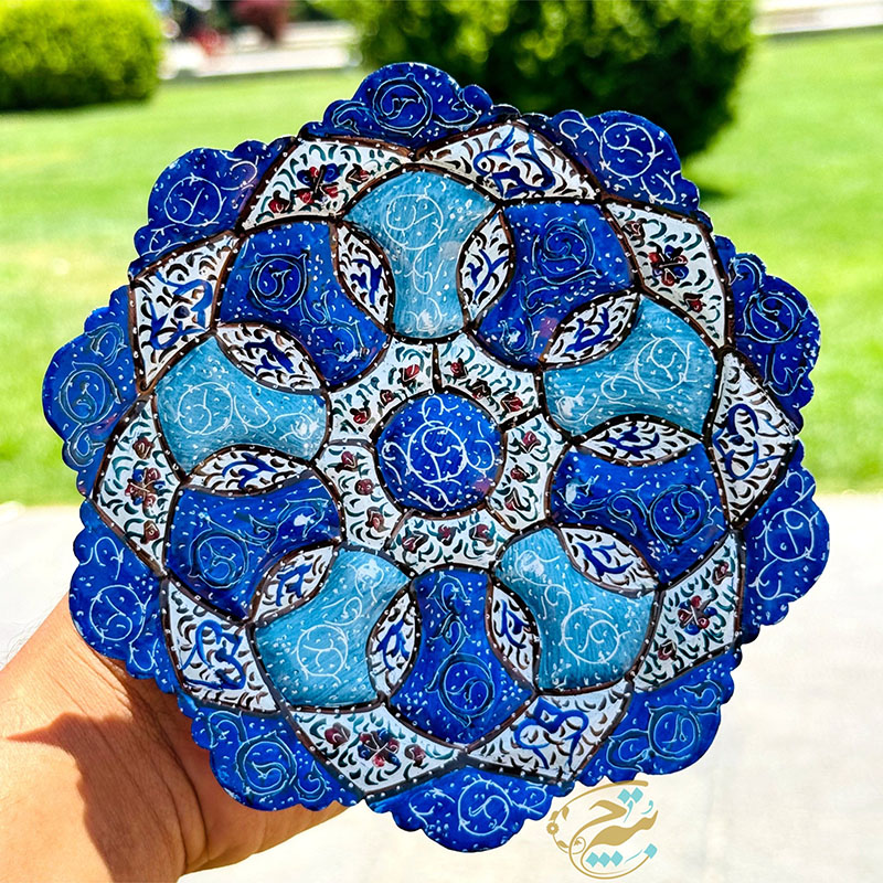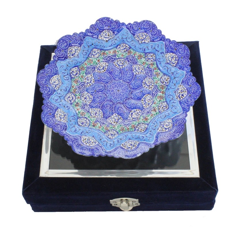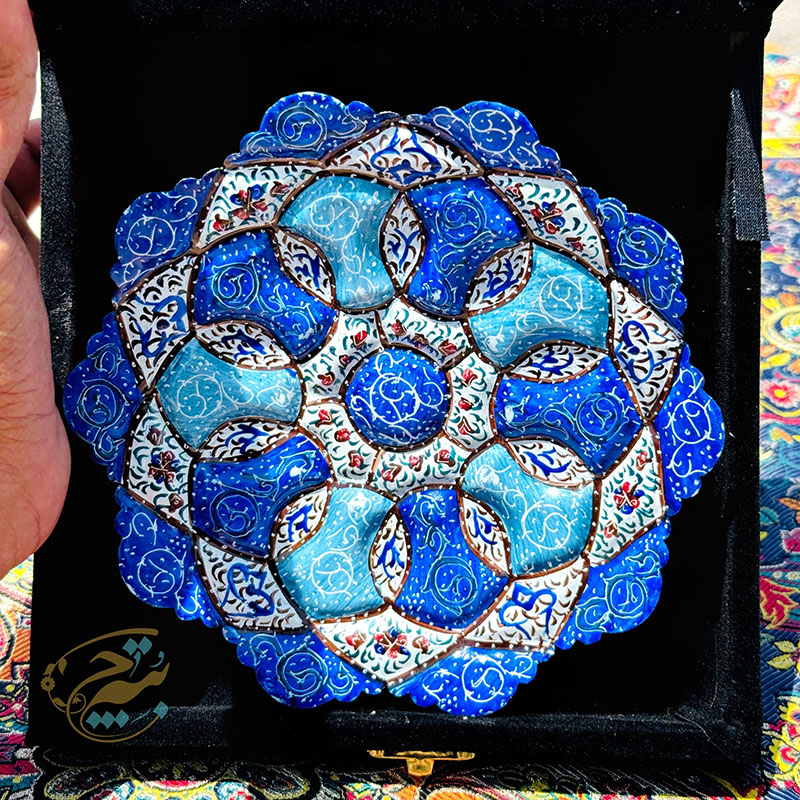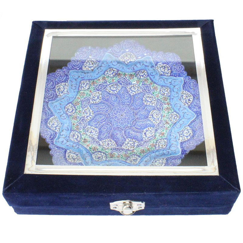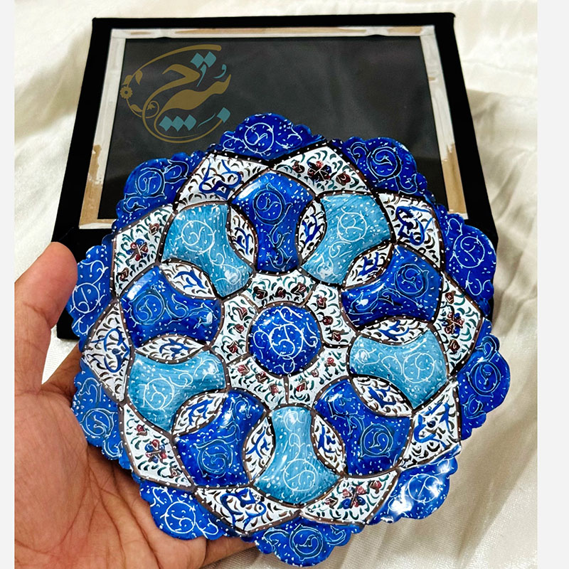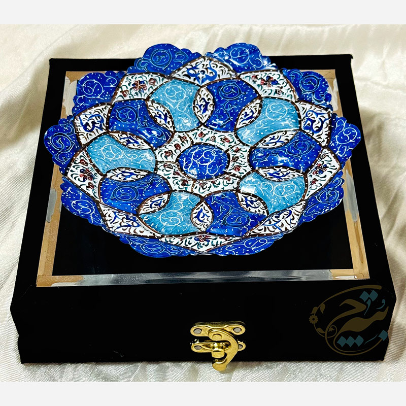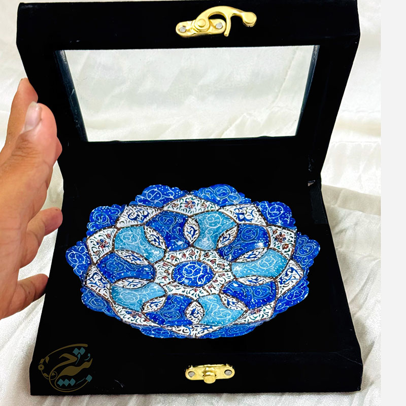 نکته : قیمت این محصول به همراه جعبه هدیه مخمل دستساز درج شده است. از پودر رنگ های مخصوص میناکاری برای نقاشی بر روی لعاب استفاده می گردد تا پس از حرارت در کوره بصورت دائمی ماندگار گردند. طرح های نقاشی شده روی ظروف میناکاری متنوع در نظر گرفته میشود تا حس یکتایی این آثار بصورت یک اثر هنری حفظ گردد. ظروف میناکاری لعاب کاری و سپس در کوره حرارت دیده اند. با توجه به این موضوع در برابر آب و رطوبت مقاوم است . شما می توانید براحتی ظروف میناکاری روی مس را با آب بشویید و یا در آب و هوای شرجی شهرهای شمالی و جنوبی از آن بهره ببرید. ظروف میناکاری اصفهان هم بصورت تزئینی و هم بصورت کاربردی مورد استفاده قرار می گیرد. ظروف میناکاری حس و حال بسیار خوبی به میزهای پذیرایی شما خواهد داد. محصولات میناکاری اثر دست هنرمندان با ذوق اصفهانی است که متناسب با آداب و رسوم سنتی ایرانی تولید می گردد. قبل از سفارش طرح مورد نظرتون رو استعلام بگیرید و با اطمینان خرید کنید.