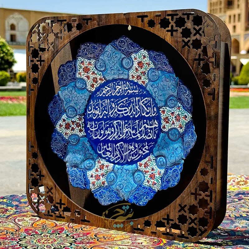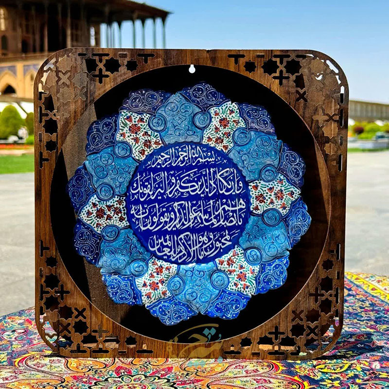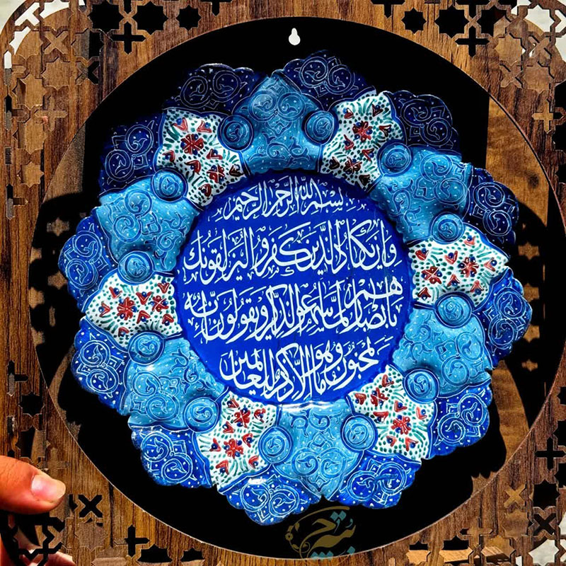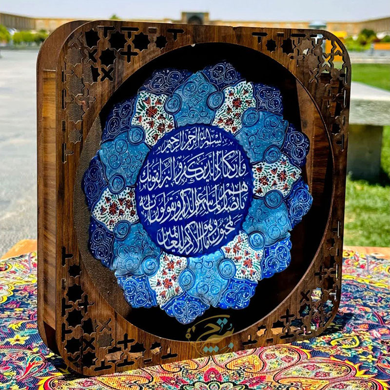 بشقاب مینا کاری مسی وان یکاد قطر 25 سانتی از جنس مس ومتریال باکیفیت به همراه قاب 34در34 سانتی متر