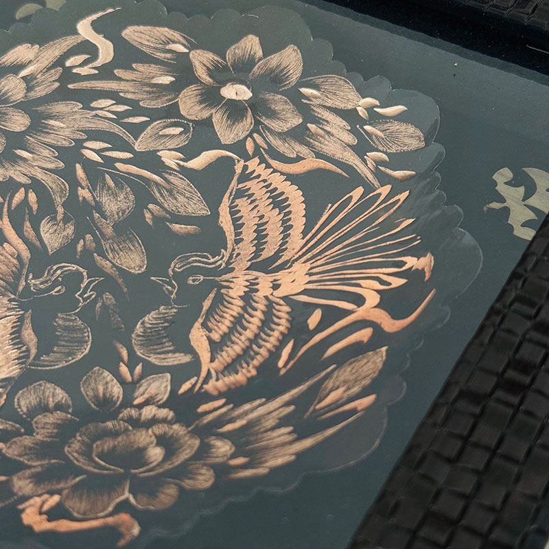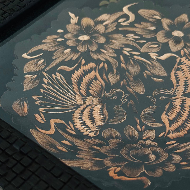 جنس محصولات الماس تراش از فلز مس مرغوب است. ابتدا قسمت وسط با رنگ مخصوص (معمولا رنگ مشکی) نقاشی شده و سپس طرح های مورد نظر بصورت ذهنی توسط استادکار ماهر بوجود می آید. پس از عملیات ساب و پلی استر ظروف بسیار زیبایی بدست خواهد آمد که هم براقی و هم ماندگاری فوق العاده ای دارد. طرح های حک شده بر روی ظروف الماس تراش ، برگرفته از هنر اصیل ایرانی بوده که توسط هنرمندان با ذوق اصفهانی بر روی ظروف مسی تراشیده شده است. فلز مس مورد استفاده در محصولات الماس تراش ضخامت بالا و مناسبی دارد و به شکل نهایی محصول جلوه خاصی بخشیده است. شما میتوانید از محصولات الماس تراش برای تهیه انواع هدایای سازمانی و ارگانی بهرمند شوید. امکان ساخت انواع جعبه های شیک و سفارشی وجود دارد. قبل از سفارش طرح مورد نظرتون رو استعلام بگیرید و با اطمینان خرید کنید.
