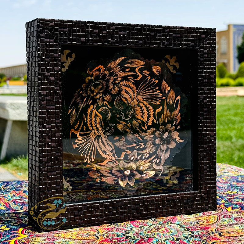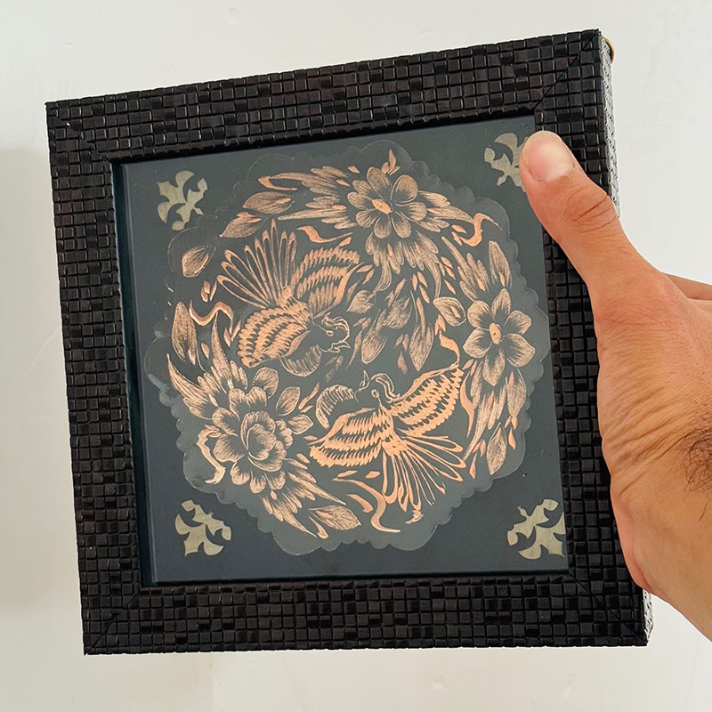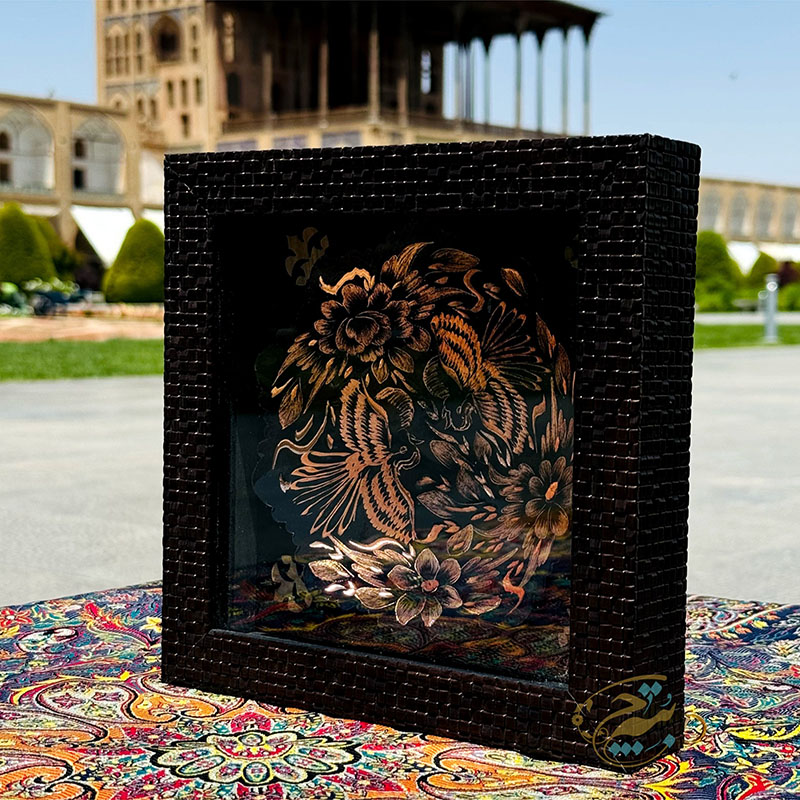 تابلو ون یکاد قلم زنی مسی با قاب خاتم کاری تذهیب اعلا 30در40