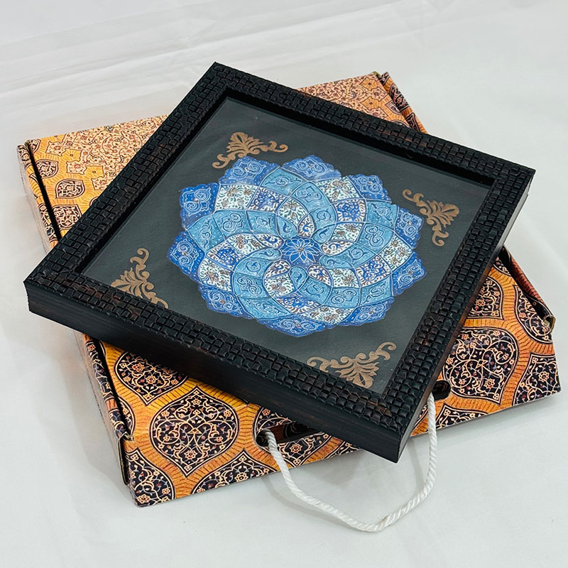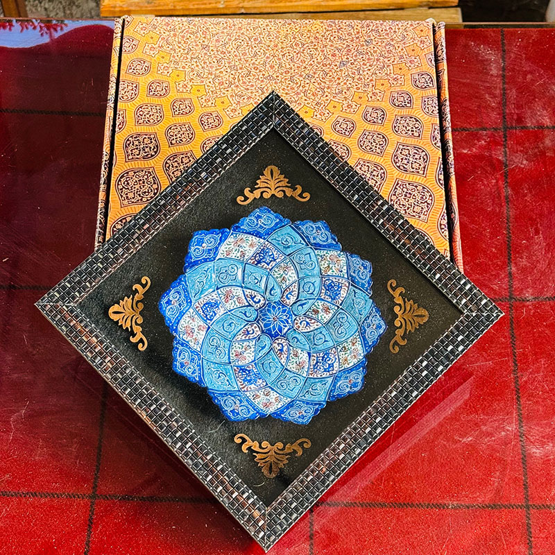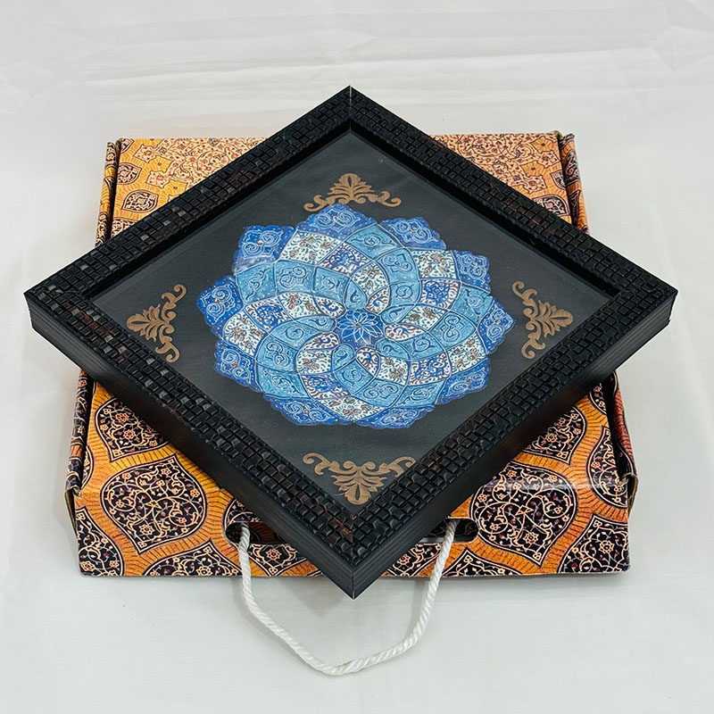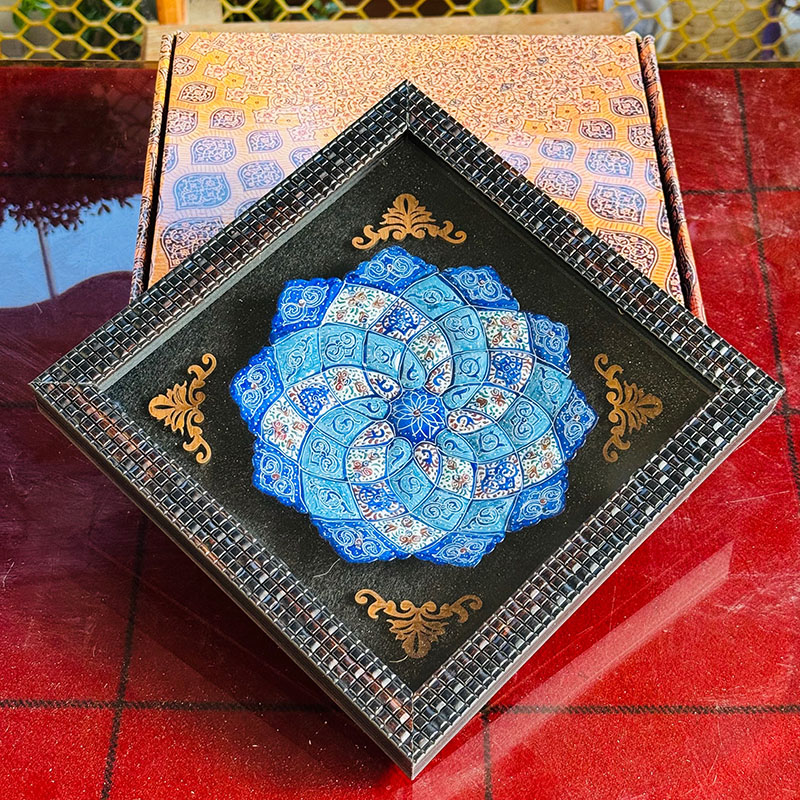 ابعاد 23.5 × 23.5 × 2.5 سانتیمتر طرح میناکاری اسلیمی جنس قاب PVC, مس میناکاری شده
