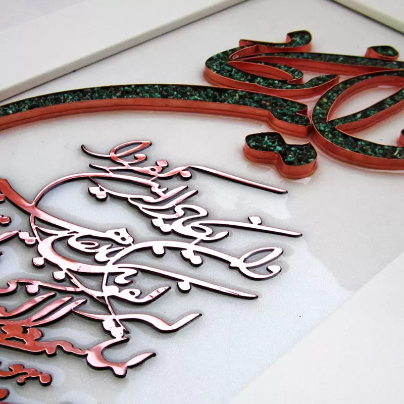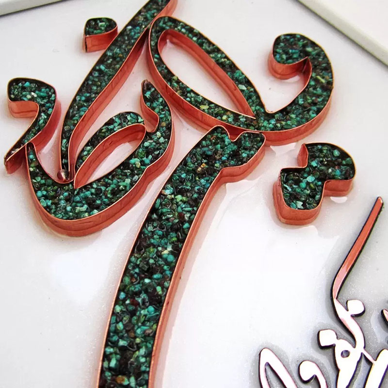 قالب کلمات ساخته شده از مس میباشد ، این قابها نقش برجسته هستند و ترکیبی از مس- سنگ اصل فیروزه نیشابور و رزین می باشد.