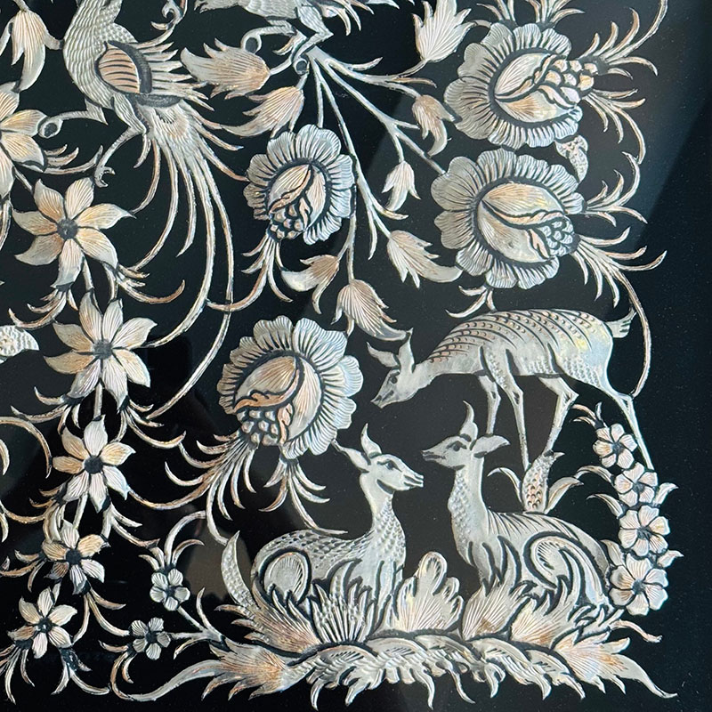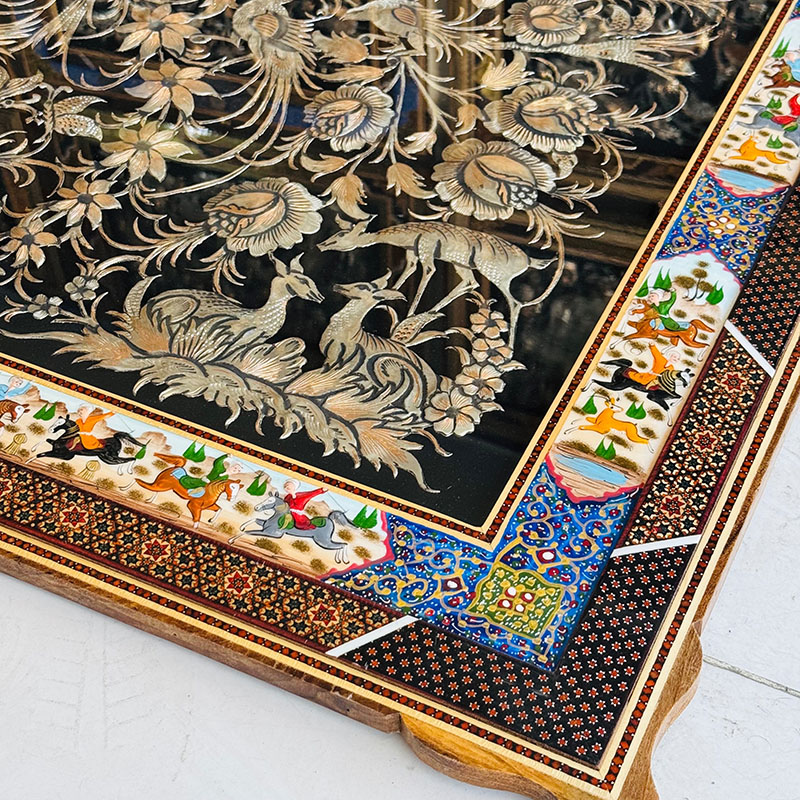 ⚜️خاتم کاری هنر اصیل ایرانی و هنر انحصاری اصفهان است که با گذشت زمان کهنه نشده و تنوع کالایی آن به روز می شود. ⚜️خاتم ترکیبی از فلزات ارزشمند، چوب های خاص و استخوان های گوناگون است. فلزاتی مانند مس و آلیاژهای مسی (برنز و برنج)، و چوب هایی مانند چوب گردو، عناب، افرا و گلابی و استخوان هایی مانند :استخوان شتر که به صورتی هنرمندانه برش خورده به شکل سیم هایی در کنار هم اشکال زیبای هندسی با ترکیبی از مثلث و چند ضلعی های گوناگون را پدید می آورد. ⚜️ این اشکال به صورت متقارن و یکدست کنار یکدیگر قرار می گیرند و به صورت روکشی ارزشمند، زیبا و ظریف برای متریال مسی یا متریال چوب راش خودنمایی می کنند. ⚜️ در انتهاء روکش پلی استر اعلی روی محصولات خاتم کاری منجر به عدم تغییر رنگ و استحکام بیشتر می شود. ⚜️این اثر می تواند به عنوان هدیه ای فاخر و لاکچری برای افراد خاص یا با نصب بر دیوار خانه به صورت دکوری مورد استفاده قرار بگیرد.