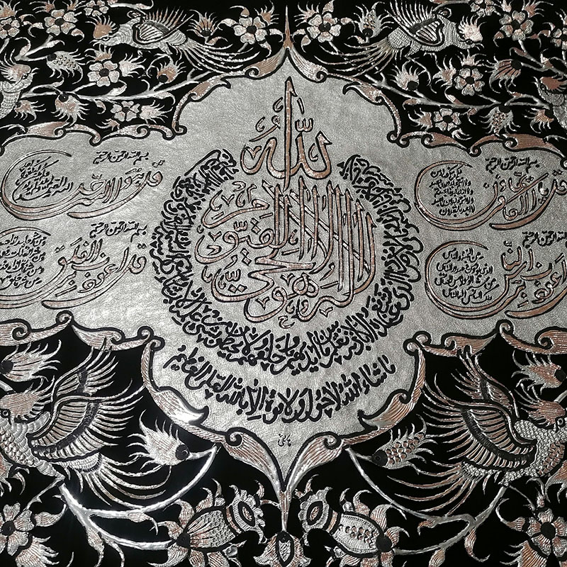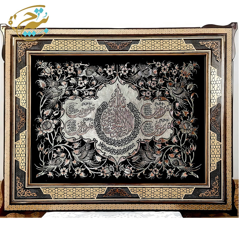 ☑️ جنس قاب از چوب است که به دست هنرمندان خاتم کاری شده است. ☑️این تابلو ها اثر دست هنرمندان قلمزن در اصفهان می باشد و نقوش زیبایی با قلم و چکش با دقت و مهارت خاصی بر روی آن ایجاد شده است. ☑️قیمت تابلو ها با توجه به ظرافت و هنر به کار رفته و همچنین مدل قاب استفاده شده و سایز آنهامتغیر است. ☑️سفارش انواع قاب های قلمزنی شده با سایز دلخواه و سفارشی شما به صورت عمده ایی و خرده فروشی و با توجه به قیمت و بودجه شما مهیا می گردد .