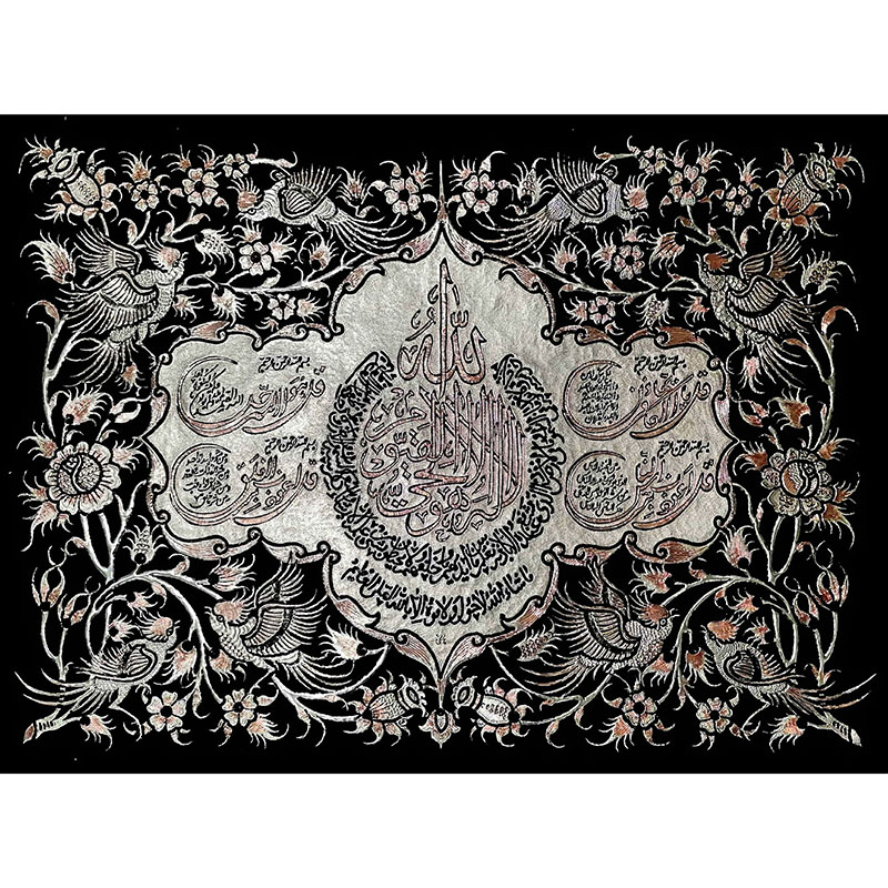 ابعادکلی این تابلوی زیبا درحدود 70در90سانتی متر و ابعادی که پلاک مسی در آن قرار میگیرد 50در70 سانت می باشد. (به علت دست ساز بودن تمامی محصولات امکان اختلاف سایز اندکی وجود دارد) تابلو قلمزنی با قاب خاتم کاری بسیار زیبا و نفیس اثر هنرمندان اصفهان با تلفیق هنرهای قلم زنی و خاتم کاری، پلاک داخلی طرح آیت الکرسی و چهار قل بر روی مس می باشد. لطفاً قبل از سفارش طرح مورد نظرتون رو استعلام بگیرید و با اطمینان خرید کنید.