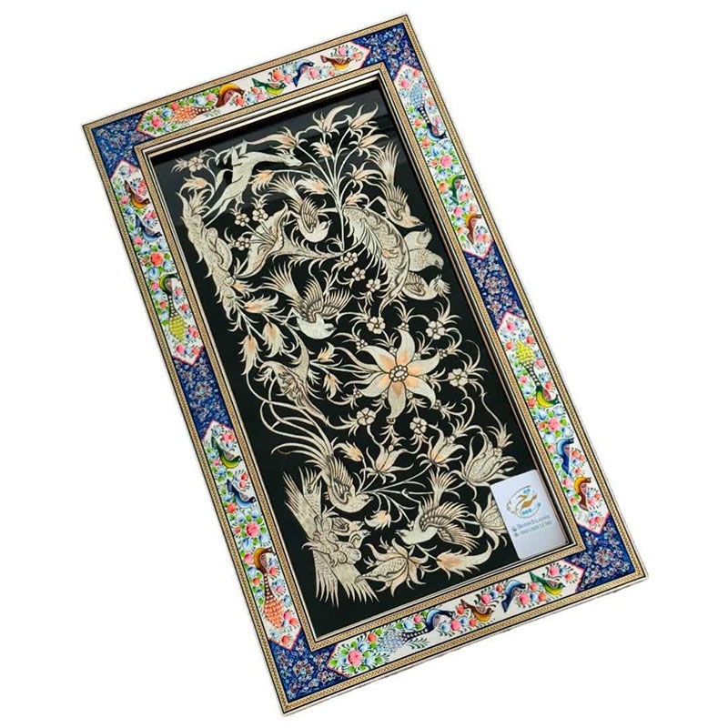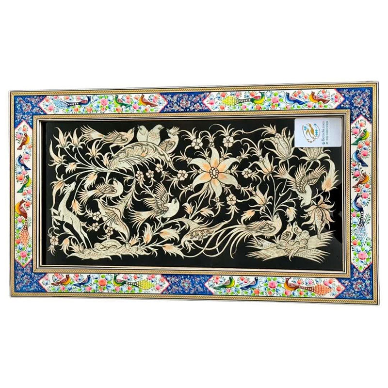 ابعادکلی این تابلوی زیبا درحدود 42در72 سانتی متر و ابعادی که پلاک مسی در آن قرار میگیرد 30در60 سانت می باشد. (به علت دست ساز بودن تمامی محصولات امکان اختلاف سایز اندکی وجود دارد) تابلو قلمزنی گل و مرغ با قاب مینیاتور بسیار زیبا و نفیس اثر هنرمندان اصفهان با تلفیق هنرهای قلم زنی و مینیاتور ، پلاک داخلی طرح گل و مرغ و یا آهو برجسته بر روی مس می باشد. لطفاً قبل از سفارش طرح مورد نظرتون رو استعلام بگیرید و با اطمینان خرید کنید.
