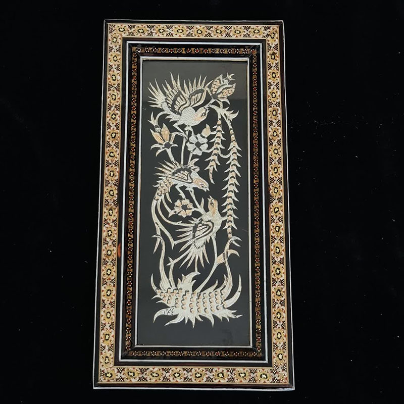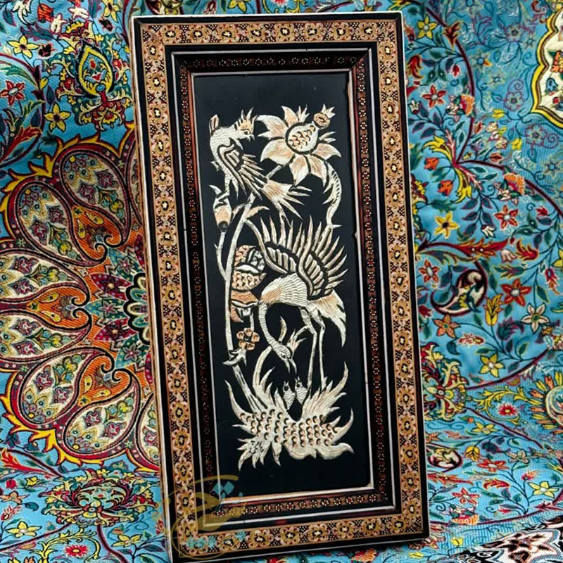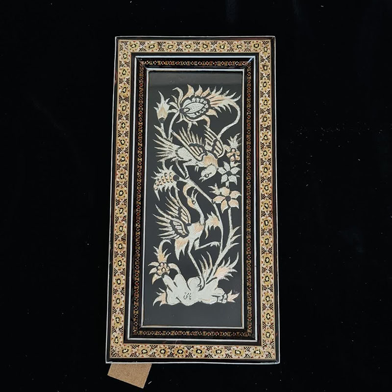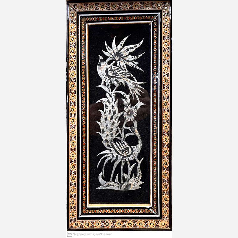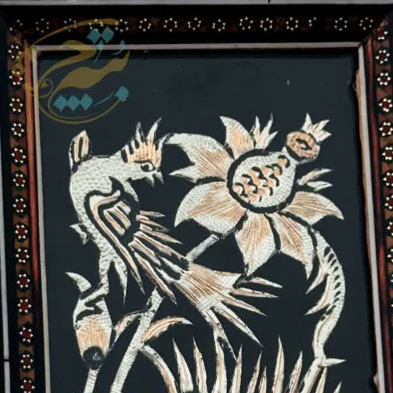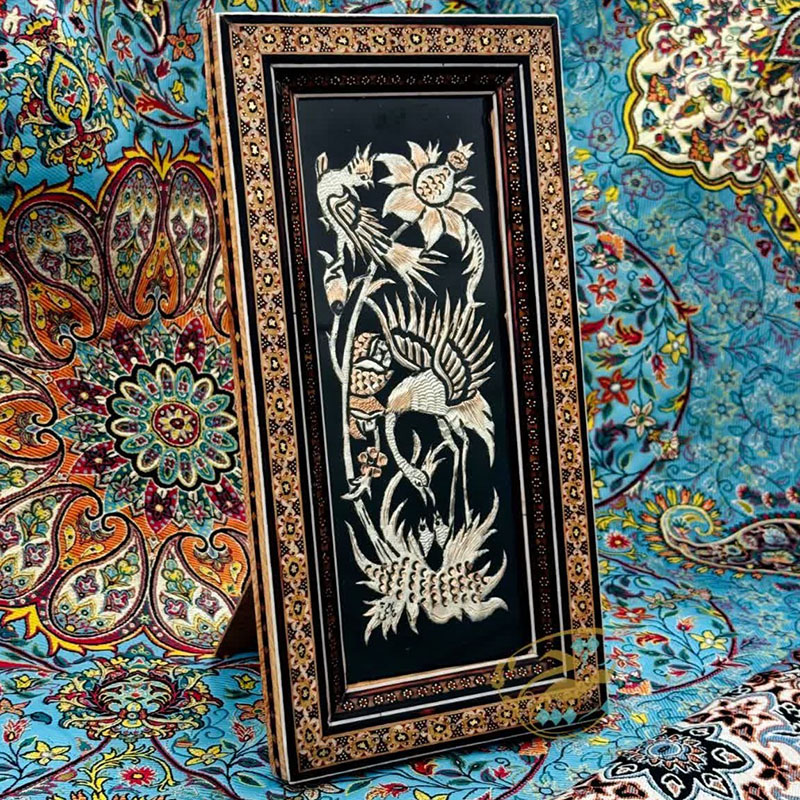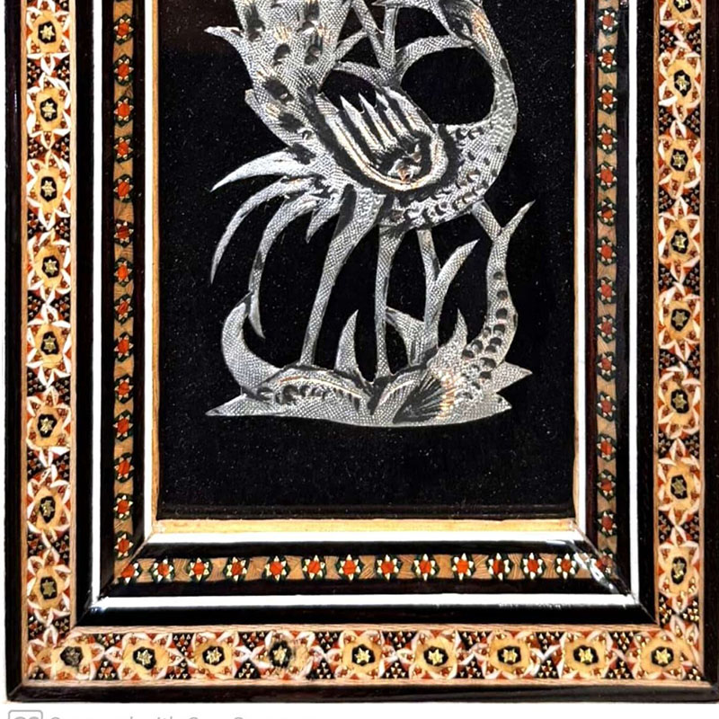 تابلو قلمزنی رومیزی با قاب خاتم کاری تک گل