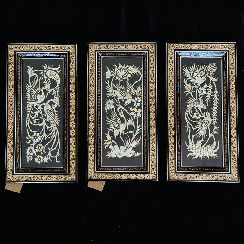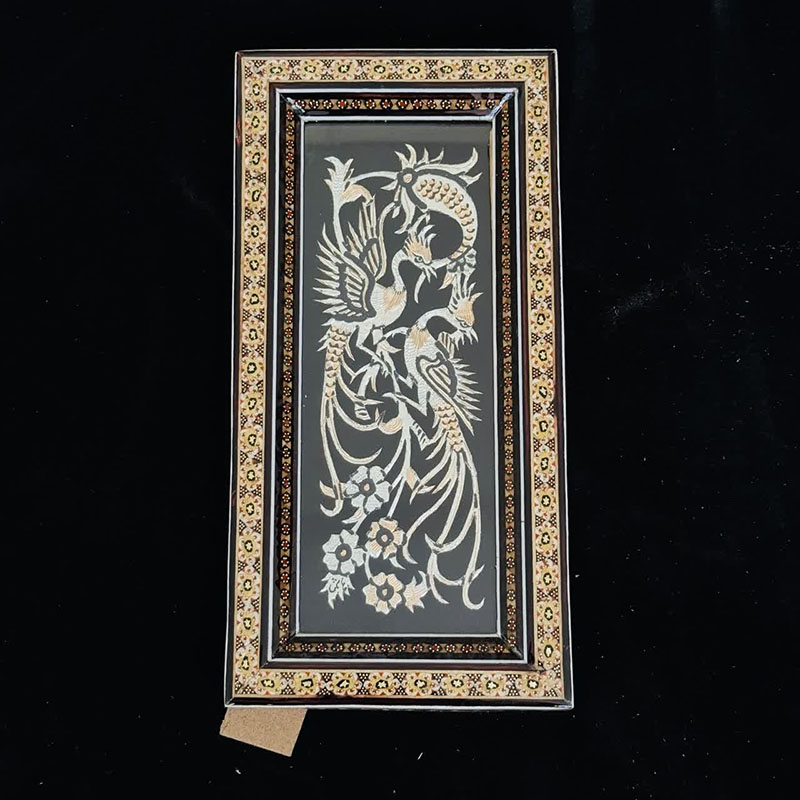 ابعاد این تابلوی زیبا 15در30سانتی متر می باشد و ابعادی که پلاک مسی در آن قرار میگیرد 10در25 . تابلو قلمزنی گل و مرغ با قاب خاتم کاری بسیار زیبا و نفیس اثر هنرمندان اصفهان با تلفیق هنرهای قلم زنی ، خاتم کاری ، پلاک داخلی طرح گل و مرغ برجسته بر روی مس می باشد. لطفاً قبل از سفارش طرح پلاک مسی مورد نظرتون رو انتخاب کنید در غیر اینصورت یکی از پلاک های زیبای گل و مرغ به صورت رندوم برای شما مونتاژ و ارسال می شود.