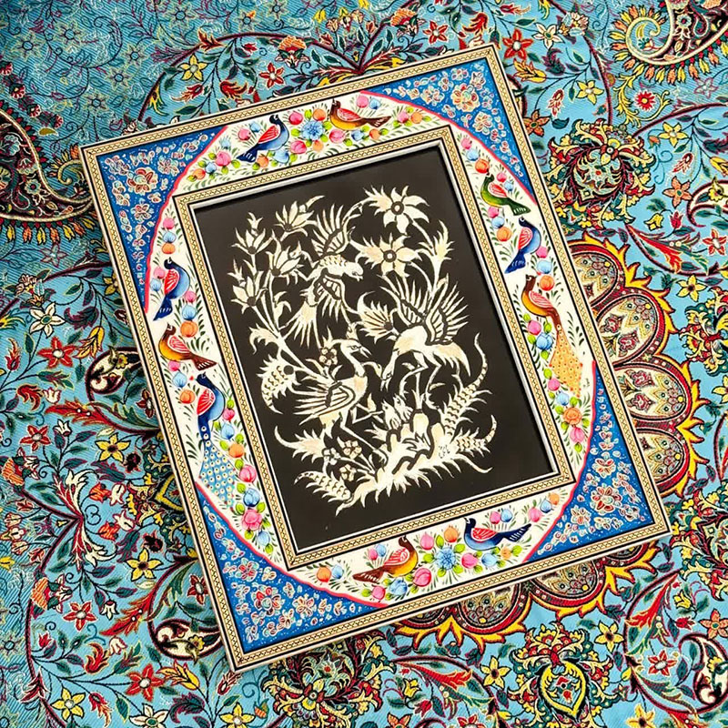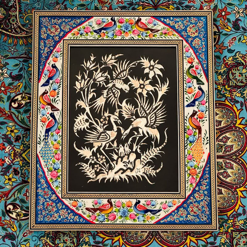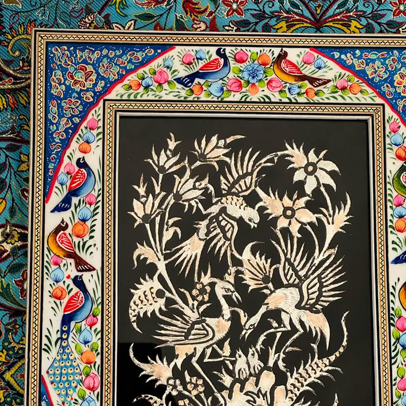 ☑️ جنس قاب از چوب و خاتم کاری است که به دست هنرمندان خاتم کار و نقاش کار شده است. ☑️این تابلو ها اثر دست هنرمندان قلمزن ب‌‌ُته چی در اصفهان می باشد و نقوش زیبایی با قلم و چکش با دقت و مهارت خاصی بر روی آن ایجاد شده است. ☑️قیمت تابلو ها با توجه به ظرافت و هنر به کار رفته و همچنین مدل قاب استفاده شده و سایز آنهامتغیر است. ☑️سفارش انواع قاب های قلمزنی شده با سایز دلخواه و سفارشی شما به صورت عمده ایی و خرده فروشی و با توجه به قیمت و بودجه شما مهیا می گردد .
