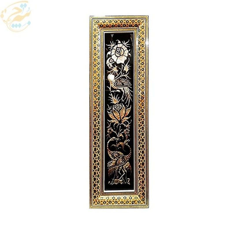 ابعاد این تابلوی زیبا 20در55 سانتی متر می باشد. تابلو قلمزنی گل و مرغ با قاب خاتم کاری رو نقاشی اسلیمی ( تذهیب ) بسیار زیبا و نفیس اثر هنرمندان اصفهان با تلفیق هنرهای قلم زنی ، خاتم کاری و نقاشی مینیاتور پلاک داخلی طرح گل و مرغ برجسته بر روی مس می باشد. لطفاً قبل از سفارش طرح پلاک مسی مورد نظرتون رو انتخاب کنید در غیر اینصورت یکی از پلاک های زیبای گل و مرغ به صورت رندوم برای شما مونتاژ و ارسال می شود.