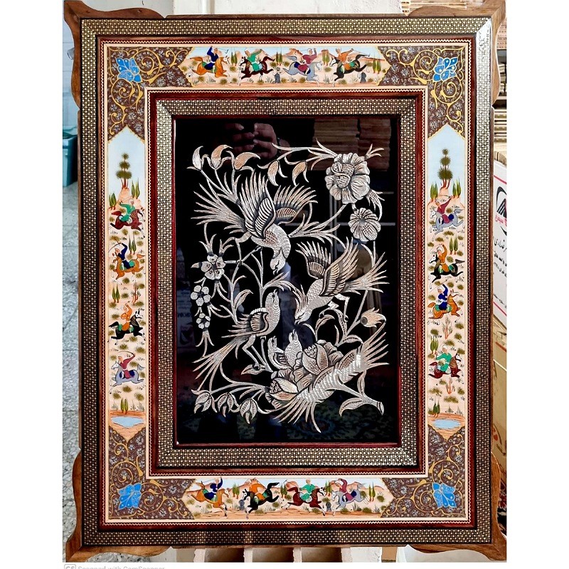 ☑️ جنس قاب از چوب و نقاشی مینیاتور است که به دست هنرمندان نقاش کار شده است. ☑️این تابلو ها اثر دست هنرمندان قلمزن در اصفهان می باشد و نقوش زیبایی با قلم و چکش با دقت و مهارت خاصی بر روی آن ایجاد شده است. ☑️قیمت تابلو ها با توجه به ظرافت و هنر به کار رفته و همچنین مدل قاب استفاده شده و سایز آنهامتغیر است. ☑️سفارش انواع قاب های قلمزنی شده با سایز دلخواه و سفارشی شما به صورت عمده ایی و خرده فروشی و با توجه به قیمت و بودجه شما مهیا می گردد .