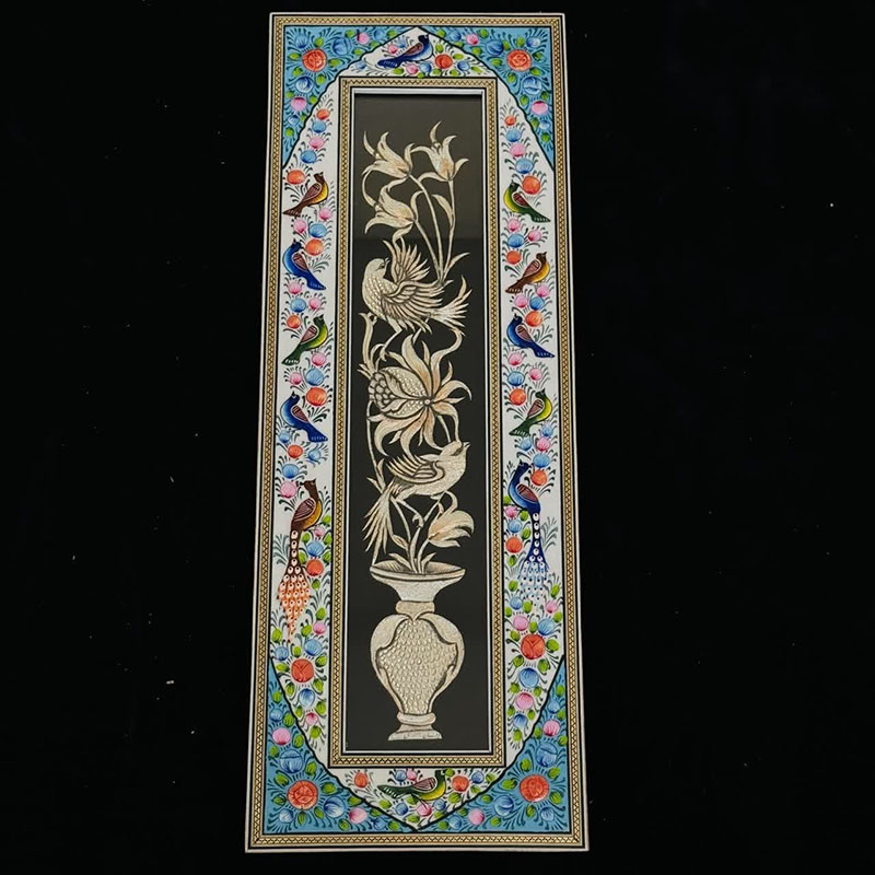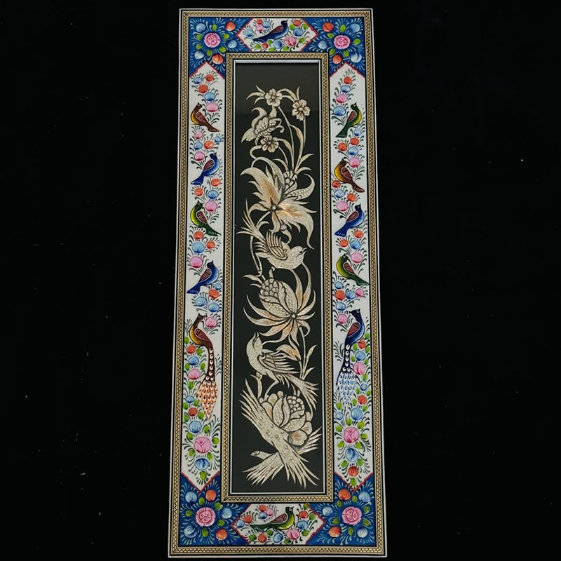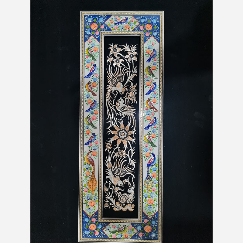 ابعاد این تابلوی زیبا 20در55 سانتی متر می باشد. تابلو قلمزنی گل و مرغ با قاب خاتم کاری رو نقاشی بسیار زیبا و نفیس اثر هنرمندان اصفهان با تلفیق هنرهای قلم زنی ، خاتم کاری و نقاشی مینیاتور پلاک داخلی طرح گل و مرغ برجسته بر روی مس می باشد. لطفاً قبل از سفارش طرح مورد نظرتون رو استعلام بگیرید و با اطمینان خرید کنی
