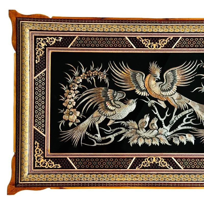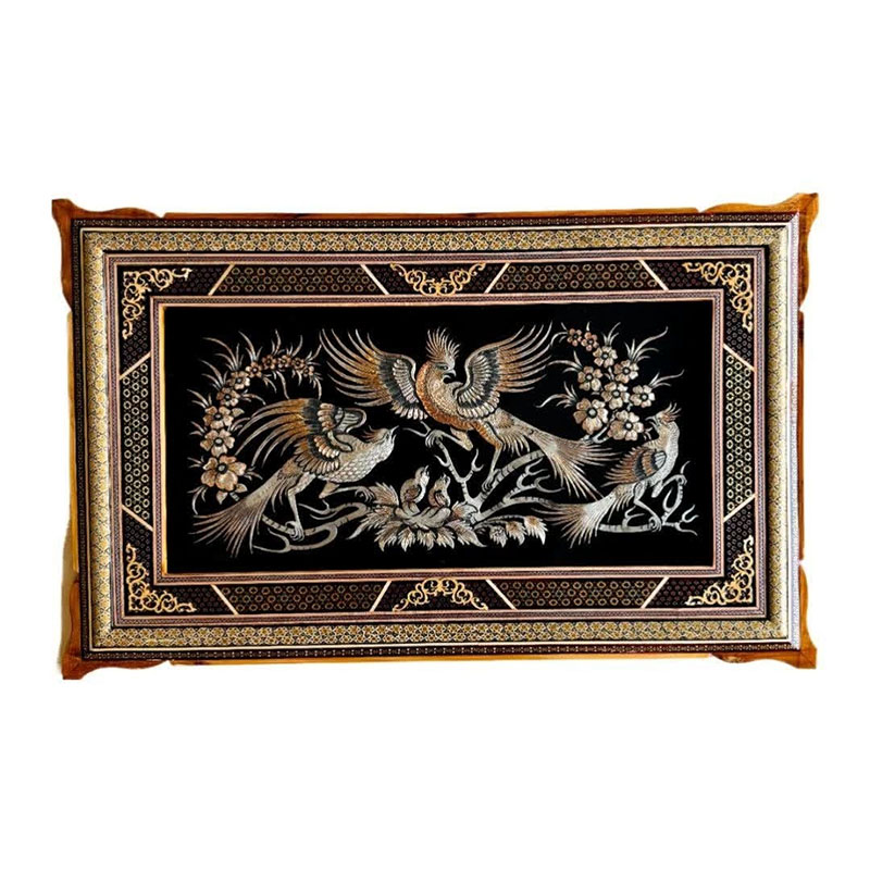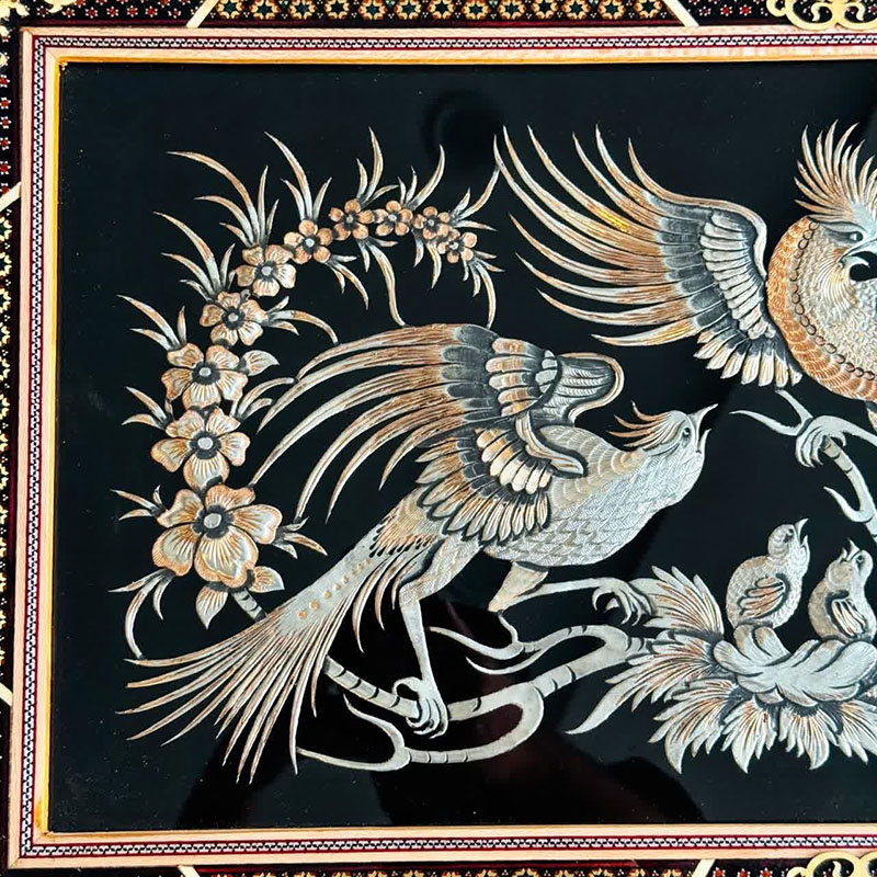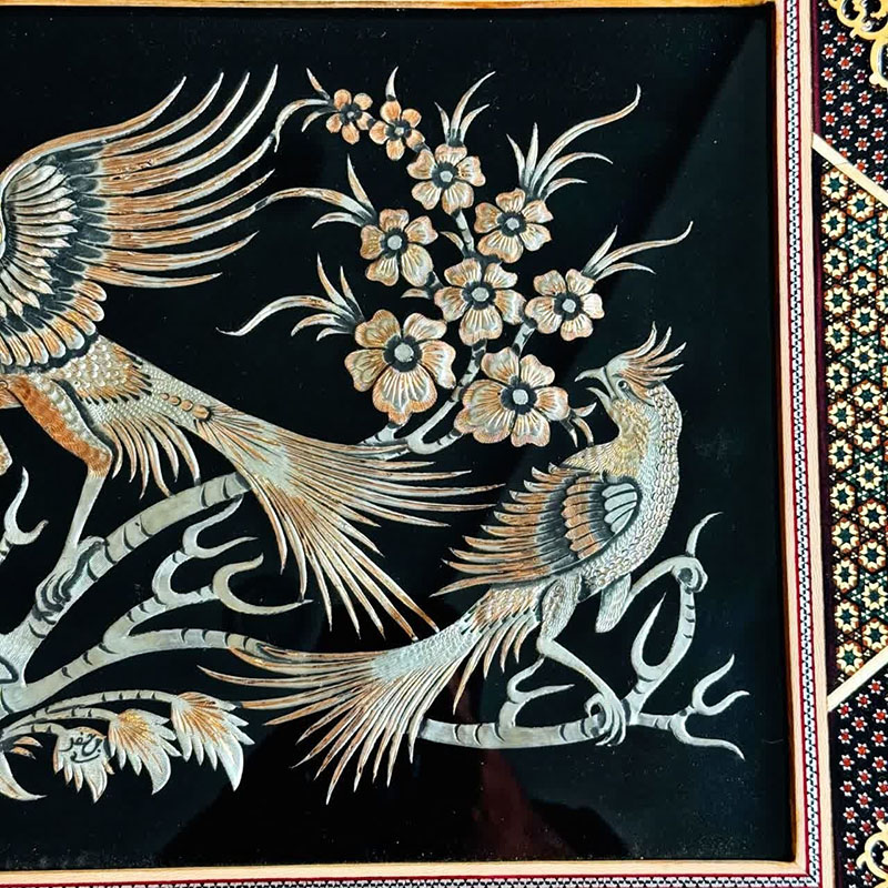 ☑️ جنس قاب از چوب و خاتم کاری است که به دست هنرمندان خاتم کار و نقاش کار شده است. ☑️این تابلو ها اثر دست هنرمندان قلمزن در اصفهان می باشد و نقوش زیبایی با قلم و چکش با دقت و مهارت خاصی بر روی آن ایجاد شده است. ☑️قیمت تابلو ها با توجه به ظرافت و هنر به کار رفته و همچنین مدل قاب استفاده شده و سایز آنهامتغیر است. ☑️سفارش انواع قاب های قلمزنی شده با سایز دلخواه و سفارشی شما به صورت عمده ایی و خرده فروشی و با توجه به قیمت و بودجه شما مهیا می گردد .