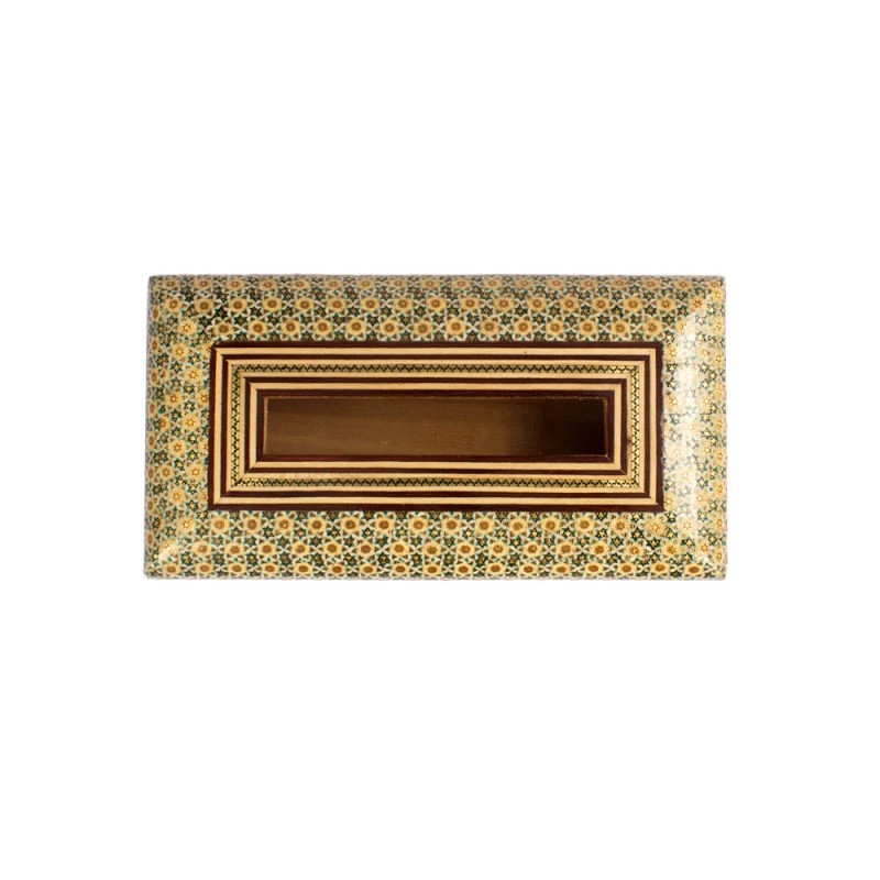 جعبه دستمال کاغذی خاتم چوبی نقاشی گل و مرغ