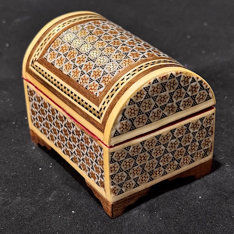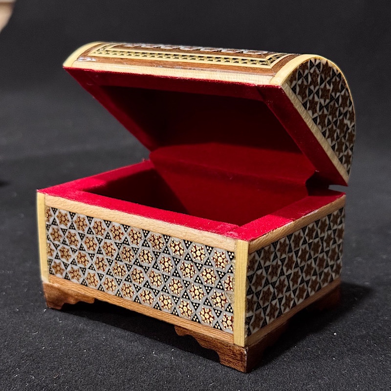 جعبه حلقه خاتم کاری صندوقچه ای از خاتم با کیفیت و روکش پلی استر تشکیل شده و از محصولات کاربردی صنایع دستی اصفهان می باشد. از این جعبه برای قرار دادن انگشتر و حلقه استفاده می شود.
