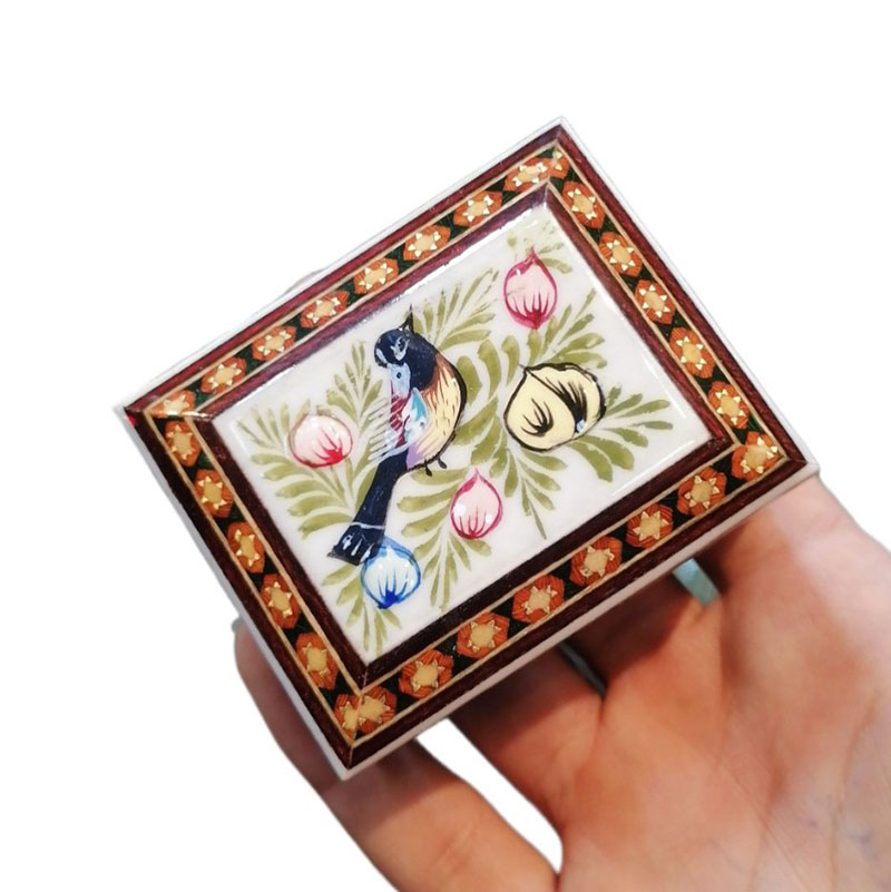 محصول بسیار زیبا و با کیفیت کاردست هنرمندان اصفهانی بسیار مناسب جهت پذیرایی و قراردادن کاردوچنگال یا قاشق،همچنین دادن هدیه در داخل آن،مناسب جهت جاجواهراتی و……درب لولایی و داخل مخمل کارشده به ابعاد 12در25 سانتی متر