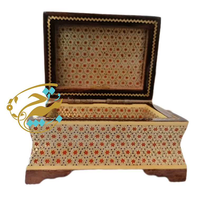 خانم ها معمولا از داشتن طلا و جواهرات لذت می برند. اما نمی توانند تمامی جواهرات را با خود به همراه داشت. در ضمن کادو دادن طلا و جواهرات، گاه حتی گردن آویزها و دست بند های نقره و استیل و سایر زیور آلات به بسته بندی متناسب با خود انها نیاز دارد. چه بهتر که این مهم در جعبه ای از صنایع دستی سرزمین خودمان انجام شود. جعبه تمام خاتم جعبه زیبایی است که می تواند محملی زیبای برای زیور آلات باشد. همچنان که به خودی خود بر روی میز آرایش یا به عنوان جعبه کادو، اثری زیبا و منحصر به فرد است. هنر خاتم کاری چیست؟ هنر خاتم کاری قرار دادن چند ضلعی هایی تهیه شده از چوب ، استخوان و مواد طبیعی در کنار یکدیگر است. این چند ضلعی ها شامل پنج ضلعی تا ده ضلعی می شوند. هنرمند خاتم کار مواد اولیه طبیعی را مانند موزاییک در کنارهم می نشاند و با دقت و ظرافت اشکال هندسی و را پدید می آورد. این اشکال با قرار گرفتن در کنارهم یک نگارینه زیبا و چشم نواز خواند شد. هرچه اشکال ایجاد شده ظریف تر و دقیق تر در کنار هم قرار گرفته باشند محصولی با ارزش تر تولید می شود. انواع استخوان حیواناتی نظیر شتر و اسب و حتی عاج فیل در مدل های مرغوب این محصول در کنار هم می نشینند. استفاده از چوب هایی نظیر گردو ، درخت عناب و کبود و نیز آبنوس و فوفل به عنوان مواد اولیه خاتم کاری استفاده می شوند.