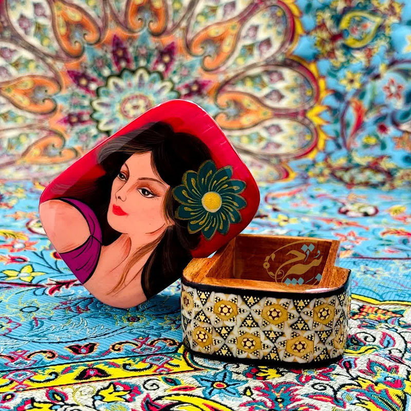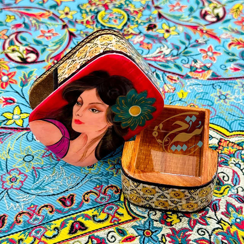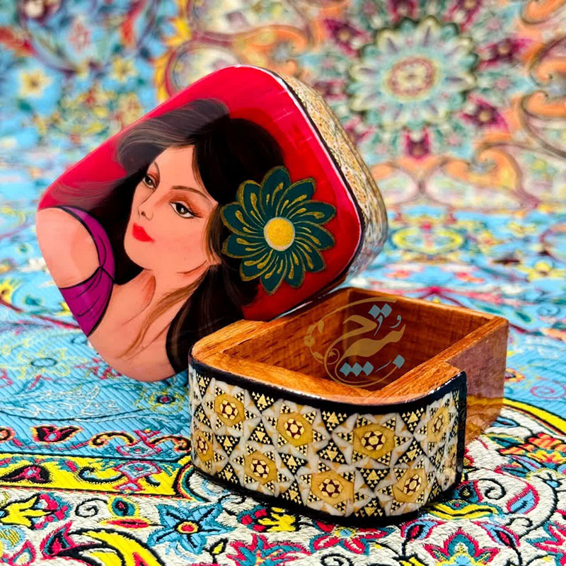 محصول بسیار زیبا و با کیفیت کاردست هنرمندان اصفهانی بسیار مناسب جهت پذیرایی و قراردادن سکه و جواهرات ،همچنین دادن هدیه در داخل آن،مناسب جهت جاجواهراتی و……درب کشویی و داخل راش به ابعاد 5در7 سانتی متر