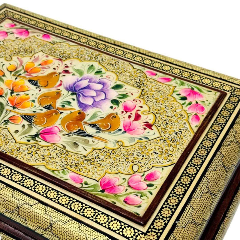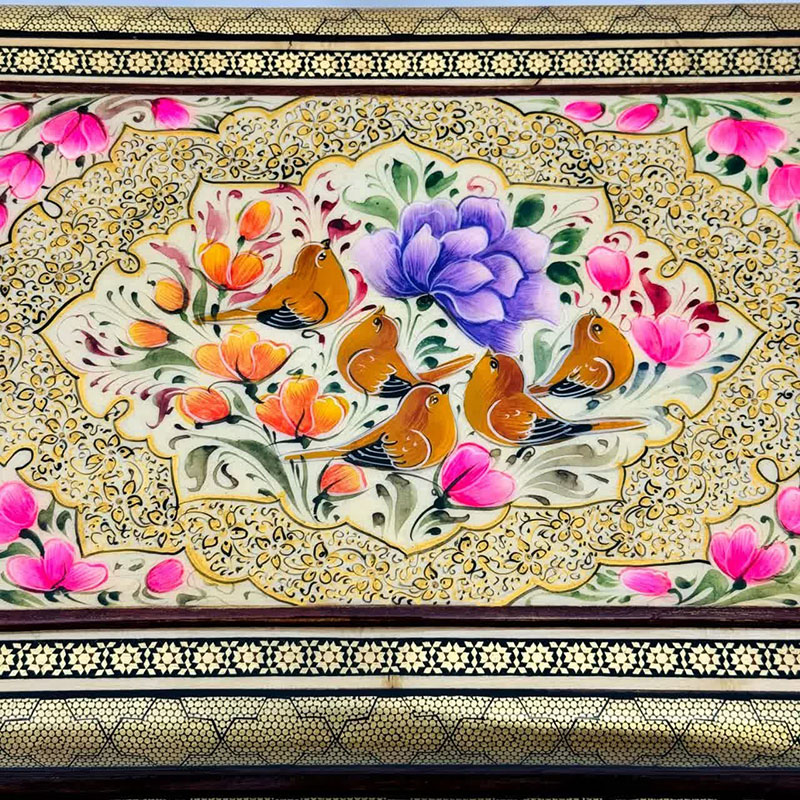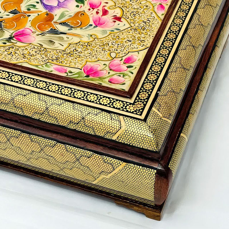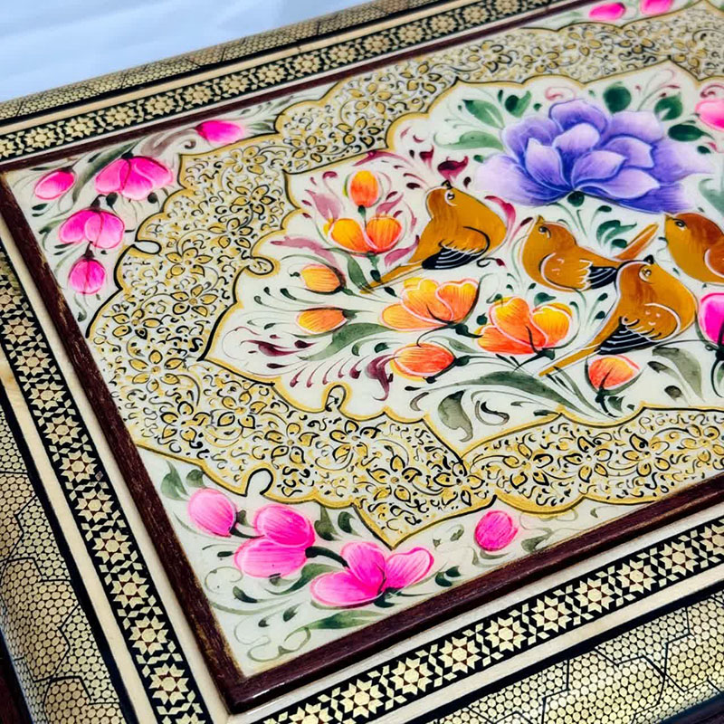 جعبه خاتم مدل سیمی نقاشی گل و بلبل