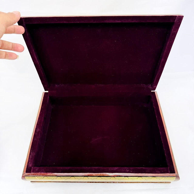 محصول بسیار زیبا و با کیفیت کاردست هنرمندان اصفهانی بسیار مناسب برای دادن هدیه در داخل آن،مناسب جهت جاجواهراتی و……درب کشویی و داخل راش کارشده به ابعاد 8در11سانتی متر