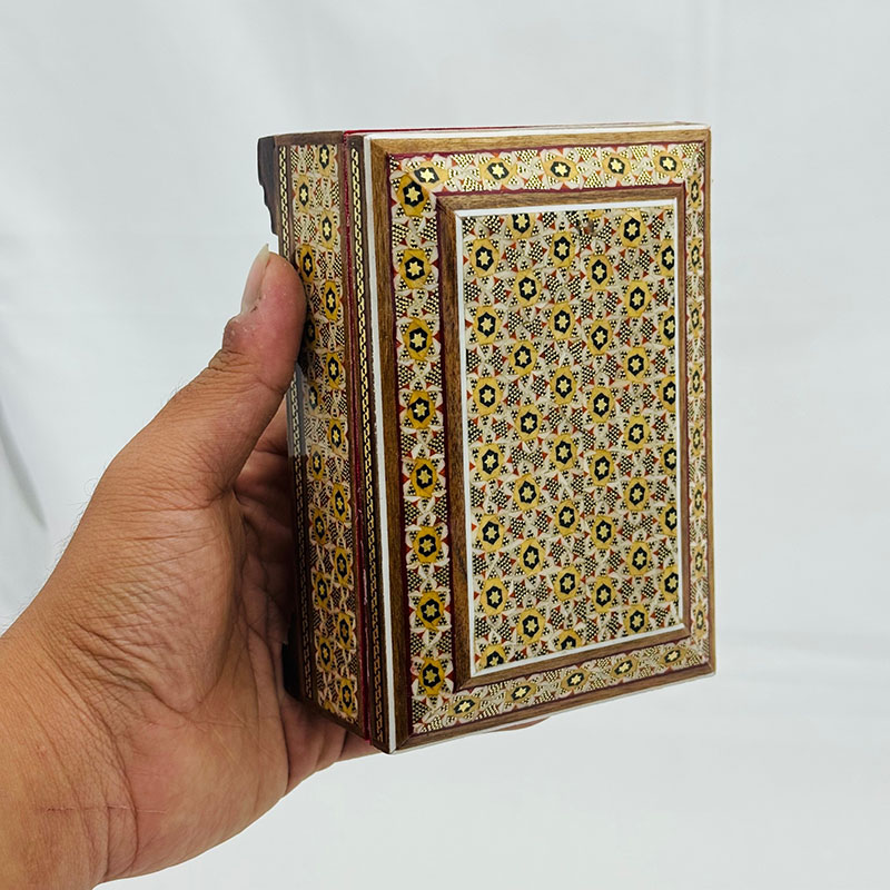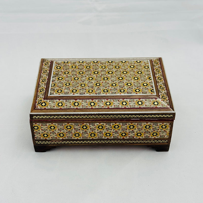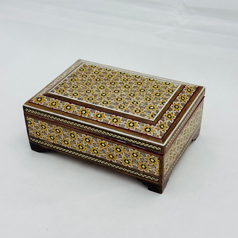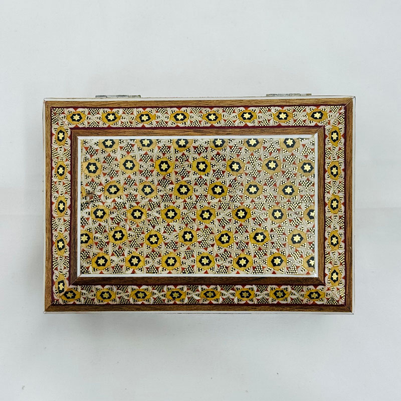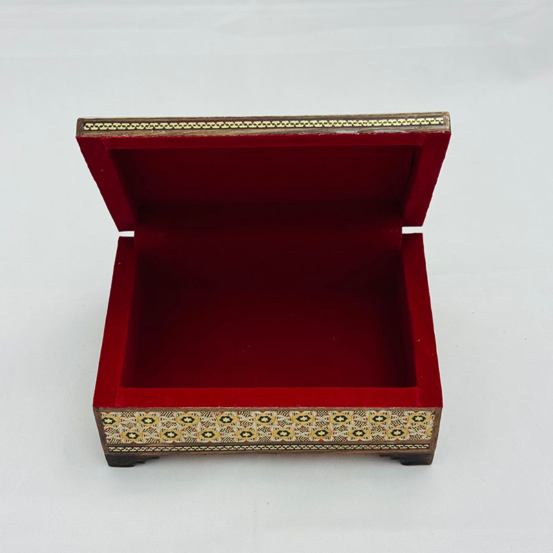 محصول بسیار زیبا و با کیفیت کاردست هنرمندان اصفهانی بسیار مناسب جهت دادن هدیه در داخل آن،مناسب جهت جاجواهراتی و……درب لولایی و داخل مخمل کارشده