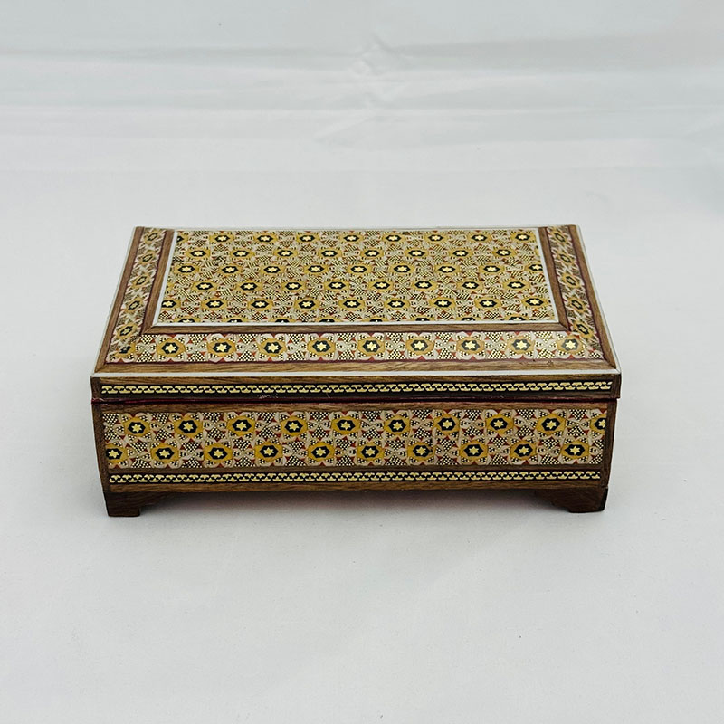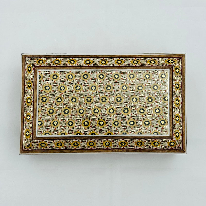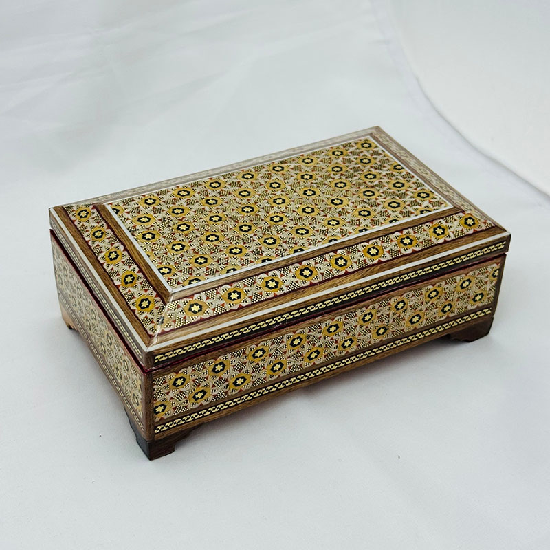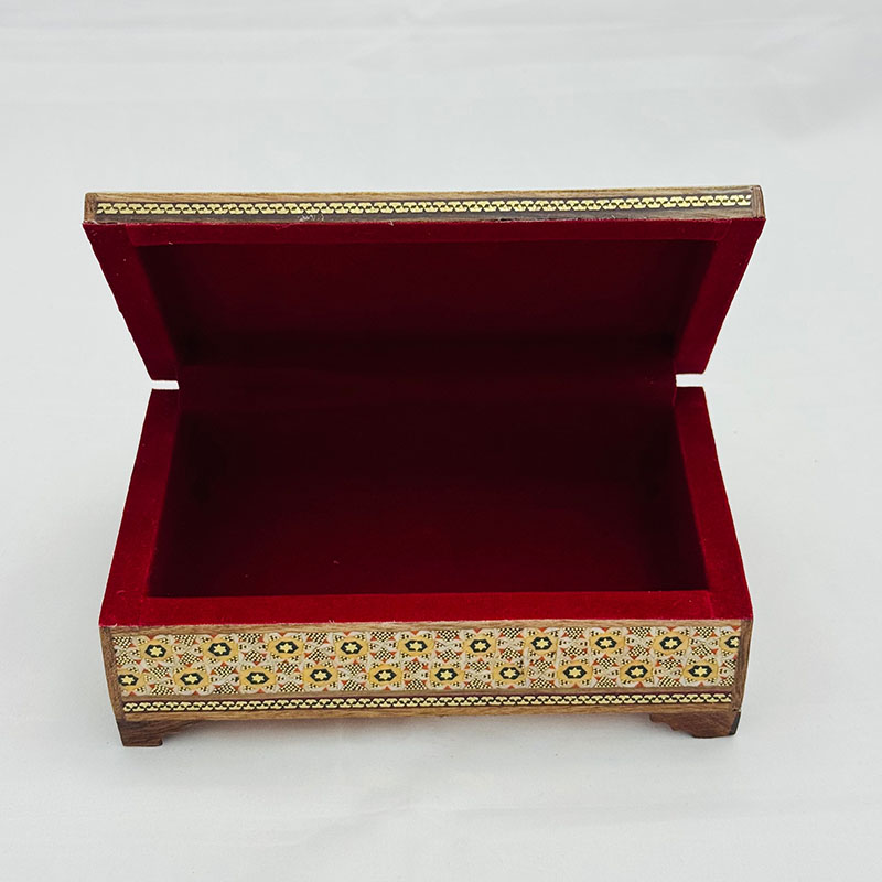 محصول بسیار زیبا و با کیفیت کاردست هنرمندان اصفهانی بسیار مناسب جهت دادن هدیه در داخل آن،مناسب جهت جاجواهراتی و……درب لولایی و داخل مخمل کارشده