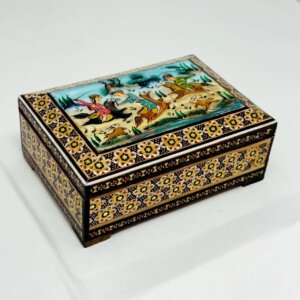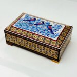 محصول بسیار زیبا و با کیفیت کاردست هنرمندان اصفهانی بسیار مناسب جهت دادن هدیه در داخل آن،مناسب جهت جاجواهراتی و……درب لولایی و داخل مخمل کارشده
