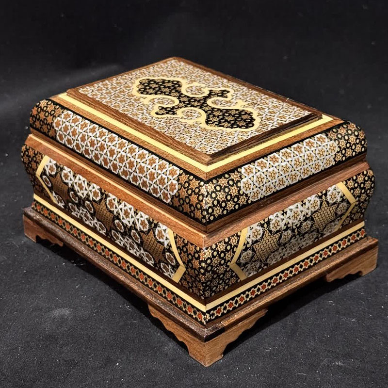 همانگونه که میدانیم هنر خاتمکاری از جمله صنایع دستی قدیمی ایران است و یکی از هنرهای برجسته و مهم ما میباشد. خاتم، ترکیبی از چندضلعیهای بسیار کوچک است که به طور منظم در ابعاد پنج ضلعی، شش ضلعی، هفت ضلعی، هشت ضلعی و یا ده ضلعی در کنار هم قرار میگیرد. انواع جعبه خاتم کاری جواهرات این هنر نیاز به ظرافت و دقت و حوصله زیادی دارد، میزان مرغوبیت یک وسیلۀ خاتمکاری شده به میزان ریز و ظریف بودن مثلثهای کنار هم قرار داده شده، یا همان چند ضلعی ها دارد. یعنی هر چقدر این چند ضلعی های کنار هم قرار داده شده، ریزتر و ظریفتر باشند آن خاتمکاری مرغوب و ارزشمندتر است.