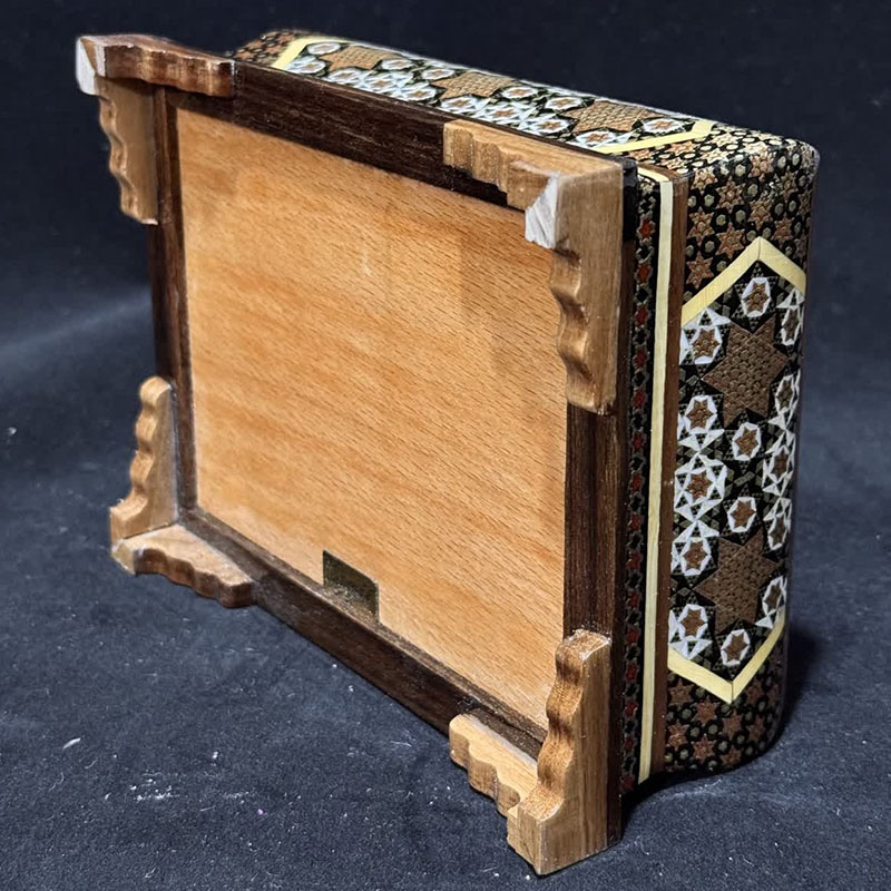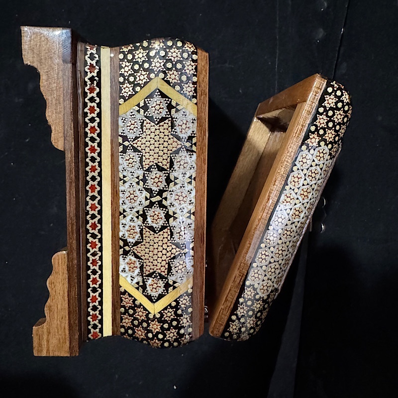 محصول بسیار زیبا و با کیفیت کاردست هنرمندان اصفهانی بسیار مناسب جهت پذیرایی و قراردادن کاردوچنگال یا قاشق،همچنین دادن هدیه در داخل آن،مناسب جهت جاجواهراتی و……درب لولایی و داخل روکش چوب راش کارشده به ابعاد 12در 16سانتی متر
