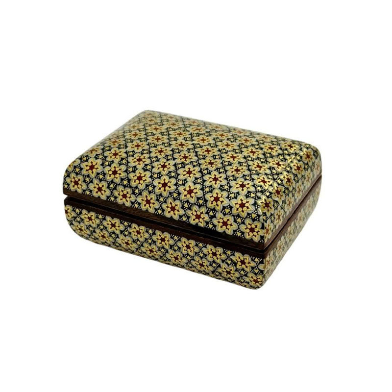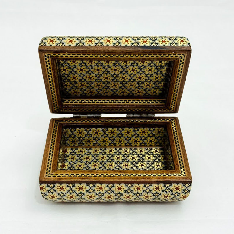 همانگونه که میدانیم هنر خاتمکاری از جمله صنایع دستی قدیمی ایران است و یکی از هنرهای برجسته و مهم ما میباشد. خاتم، ترکیبی از چندضلعیهای بسیار کوچک است که به طور منظم در ابعاد پنج ضلعی، شش ضلعی، هفت ضلعی، هشت ضلعی و یا ده ضلعی در کنار هم قرار میگیرد. انواع جعبه خاتم کاری جواهرات این هنر نیاز به ظرافت و دقت و حوصله زیادی دارد، میزان مرغوبیت یک وسیلۀ خاتمکاری شده به میزان ریز و ظریف بودن مثلثهای کنار هم قرار داده شده، یا همان چند ضلعی ها دارد. یعنی هر چقدر این چند ضلعی های کنار هم قرار داده شده، ریزتر و ظریفتر باشند آن خاتمکاری مرغوب و ارزشمندتر است.