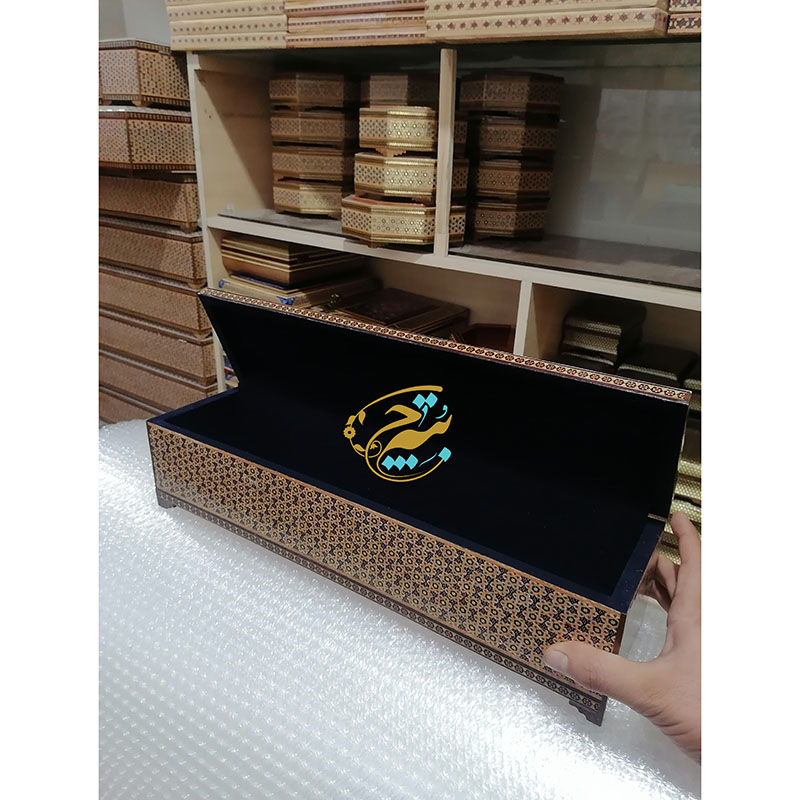 جعبه خاتم کاری بزرگ مخصوص هدیه های لاکچری و صادرات است و تولید آن کاملا انحصاری و مخصوص فروشگاه بُته چی می باشد، در دوسایز 10در12در45 و 10در12در40 موجود است. سفارش جزیی و کلی برای افراد بازرگان و هنرپسند امکان پذیر است.