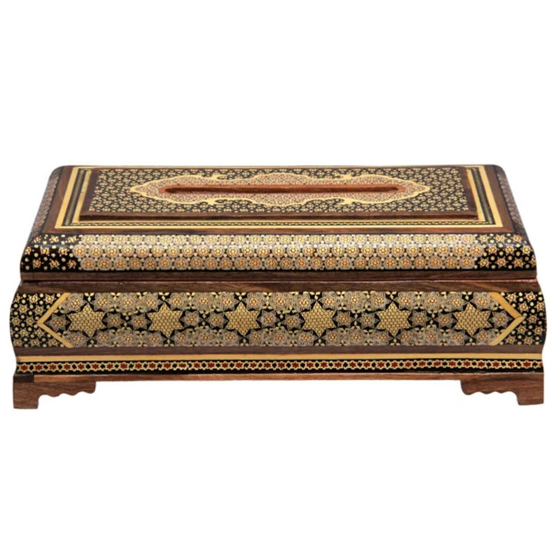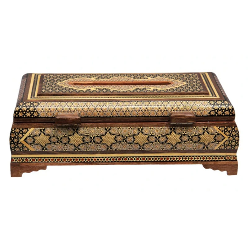 جعبه دستمال خاتم کاری توپی رو خاتم لولایی