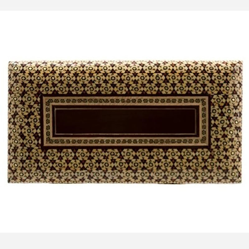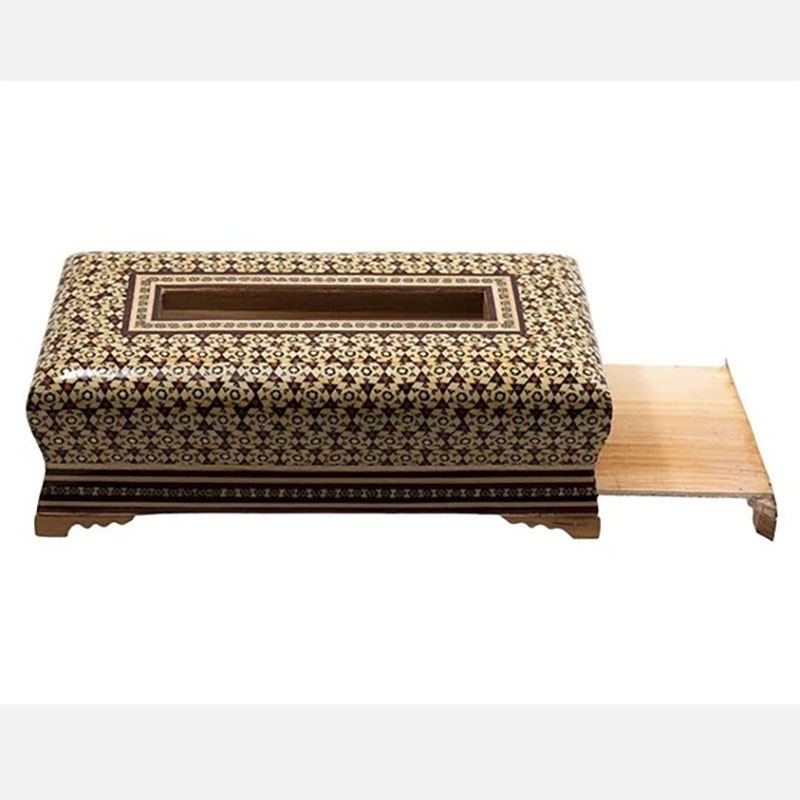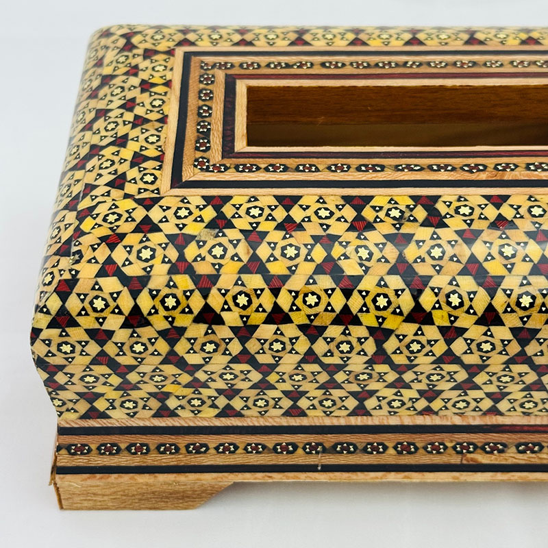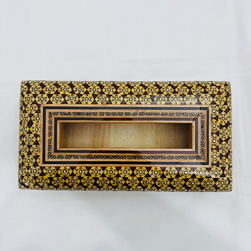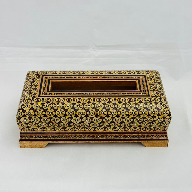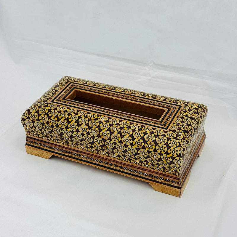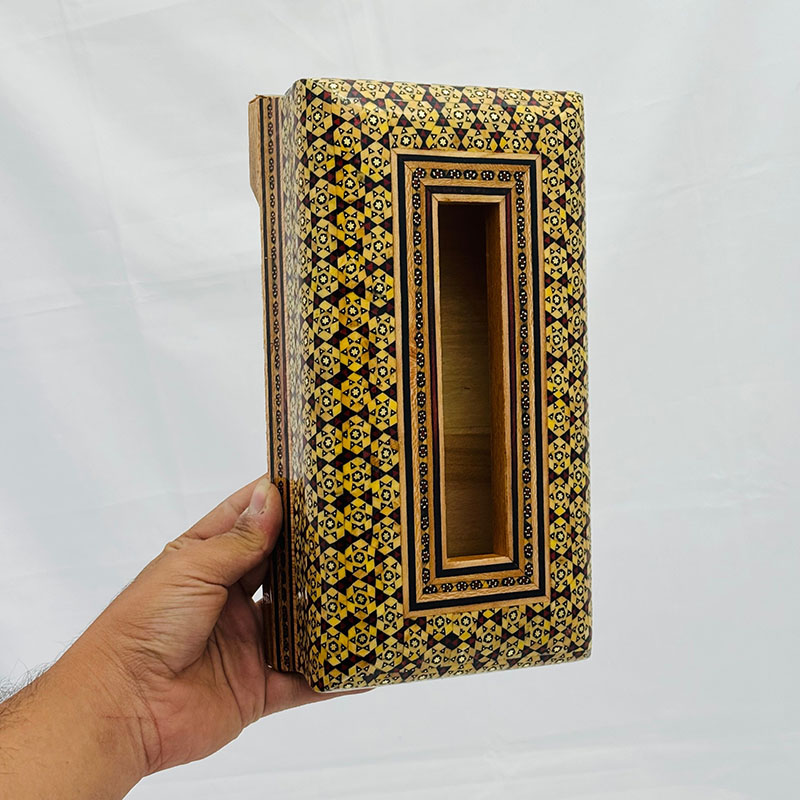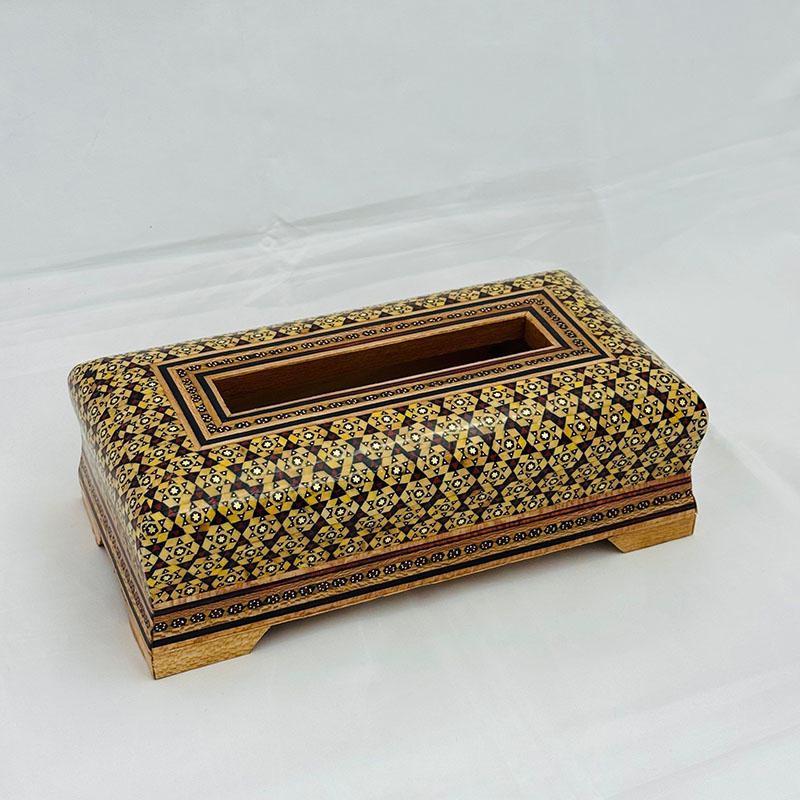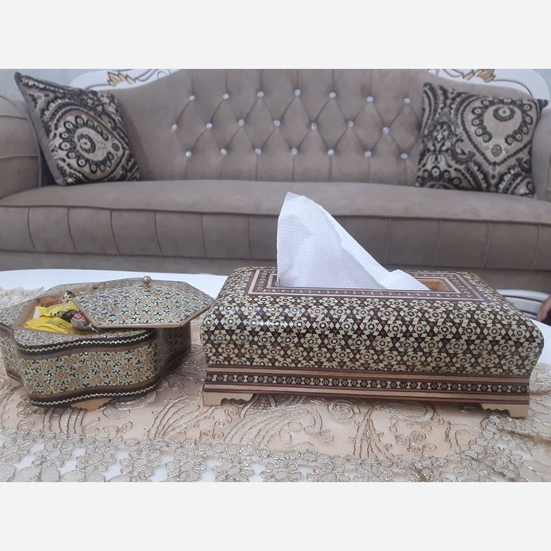 ⚜️جعبه دستمال کاغذی خاتم اعلا اصفهان را می توان پرطرفدار ترین محصول صنایع دستی خاتم سازی اصفهان نام برد. شما می توانید برای زیباتر نشان دادن جعبه های دستمال کلینکس از جادستمال کاغذی خاتم کاری استفاده کنید. ⚜️جعبه دستمال خاتم کاری یکی از نمادهای هنر استادکاران خاتم ساز اصفهان است. جا دستمال خاتم کاری موردهای استفاده زیادی در منازل و دفاتر کار دارد.از این رو برای هدیه به دوستان و اقوام و یا حتی هدایای تبلیغاتی خاتم کاری صنایع دستی گزینه مناسبی است. ⚜️قیمت جعبه دستمال خاتم مناسب و خرید آن از سراسر کشور امکان پذیر است. هنر خاتم کاری اصفهان و خاتم کاری شیراز از شناخته شده ترین هنرهای دستی ایرانی محسوب می گردند که علاقه مندان زیادی در داخل و خارج کشور دارند.