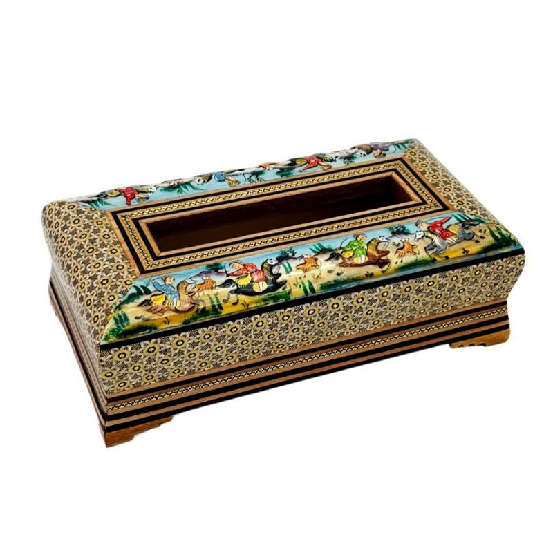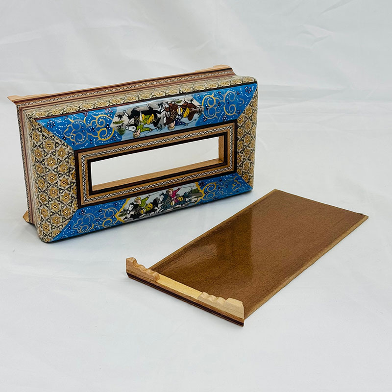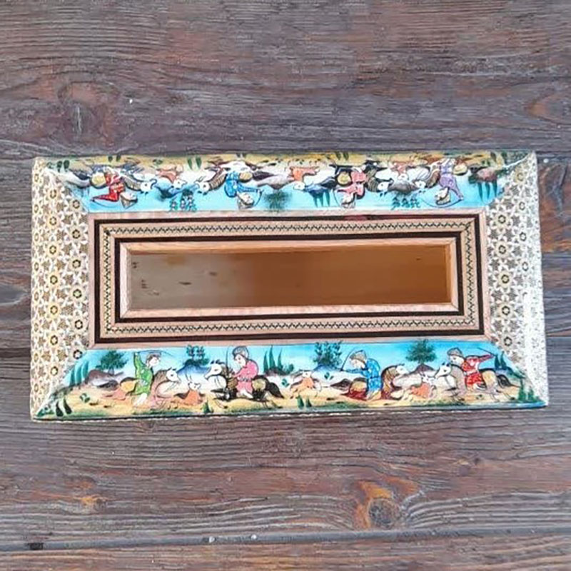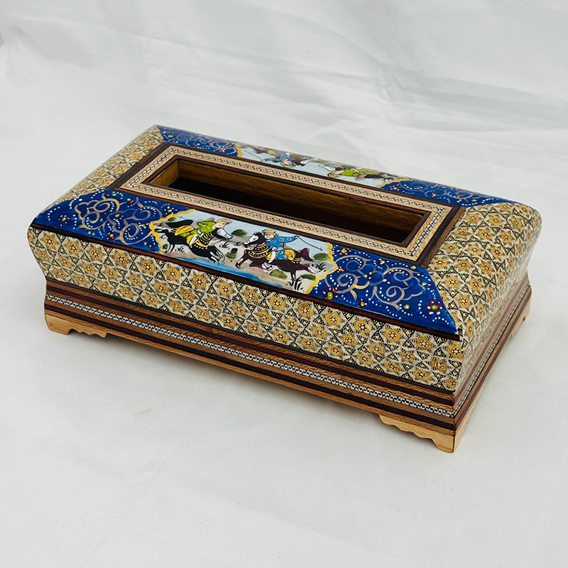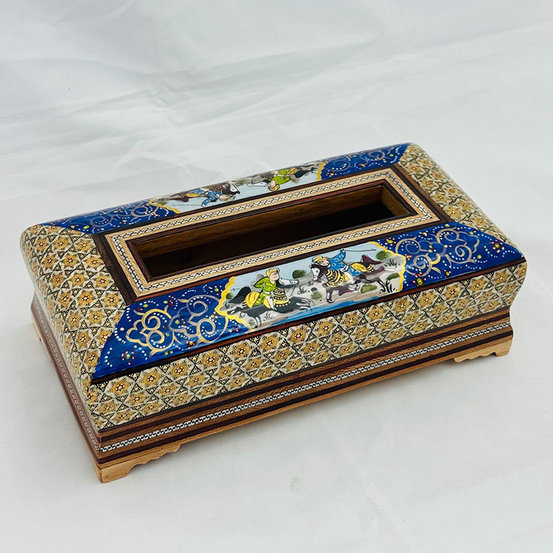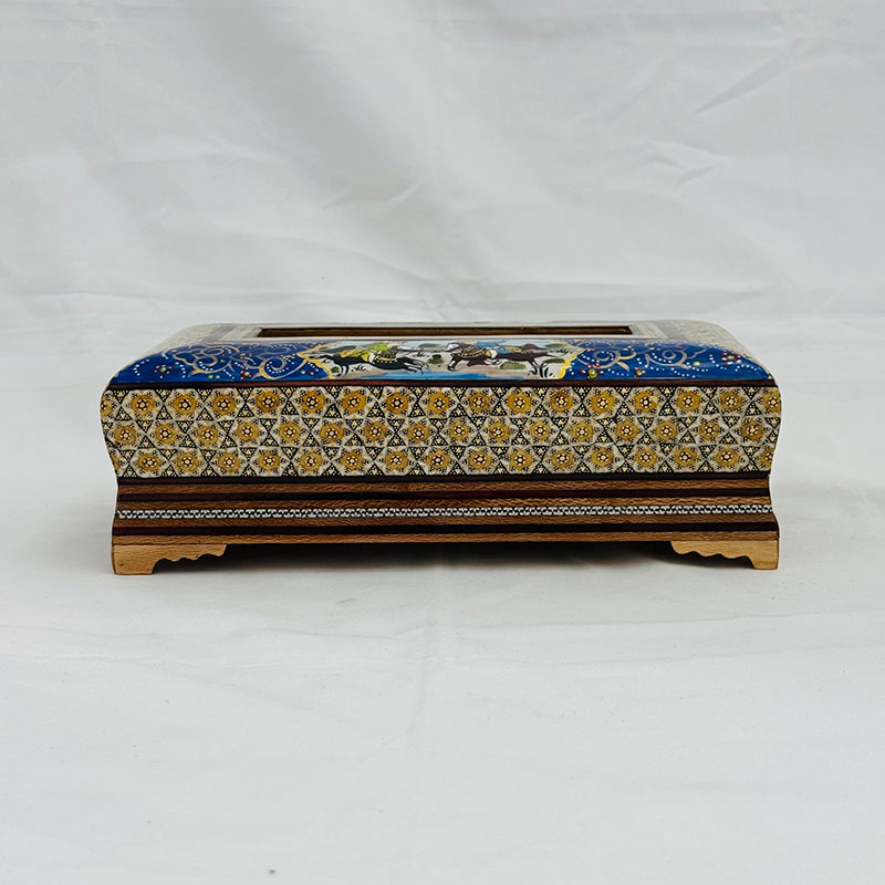 ⚜️جعبه دستمال کاغذی خاتم اعلا اصفهان را می توان پرطرفدار ترین محصول صنایع دستی خاتم سازی اصفهان نام برد. شما می توانید برای زیباتر نشان دادن جعبه های دستمال کلینکس از جادستمال کاغذی خاتم کاری استفاده کنید. ⚜️جعبه دستمال خاتم کاری یکی از نمادهای هنر استادکاران خاتم ساز اصفهان است. جا دستمال خاتم کاری موردهای استفاده زیادی در منازل و دفاتر کار دارد.از این رو برای هدیه به دوستان و اقوام و یا حتی هدایای تبلیغاتی خاتم کاری صنایع دستی گزینه مناسبی است. ⚜️قیمت جعبه دستمال خاتم مناسب و خرید آن از سراسر کشور امکان پذیر است. هنر خاتم کاری اصفهان و خاتم کاری شیراز از شناخته شده ترین هنرهای دستی ایرانی محسوب می گردند که علاقه مندان زیادی در داخل و خارج کشور دارند.