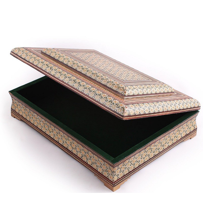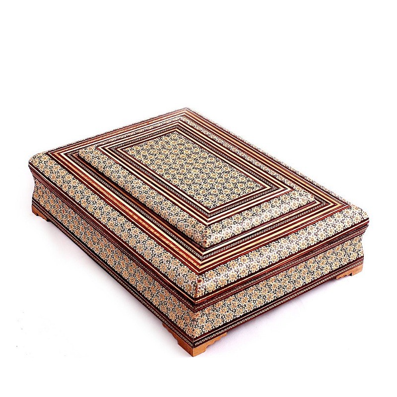 با انتخاب جعبه هدیه خاتم کاری (جاقرآنی ، کتاب حافظ) مدل رو خاتم خورشیدی، ترکیبی از هنر، اصالت و کارایی را در اختیار خواهید داشت.
