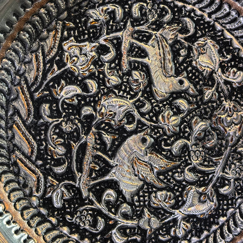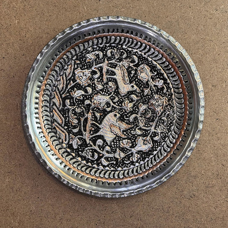 سینی قلمزنی مسی بسیار ظریف است که به دست هنرمندان قلمزن کار شده است و پس از قلمزنی قلع اندود شده که دوام و ماندگاری آن فوق العاده زیاد است . ☑️در پشت این سینی ها آویزی طراحی شده که شما میتوانید آن را به راحتی در هرنقطه از اتاق نصب کنید. ☑️این سینی ها اثر دست هنرمندان قلمزن در اصفهان است و نقوش زیبایی با قلم و چکش با دقت و مهارت خاصی بر روی آن ایجاد شده است. ☑️قیمت سینی با توجه به ظرافت و هنر به کار رفته و سایز آنهامتغیر است. ☑️سفارش انواع سینی قلمزنی شده با سایز دلخواه و سفارشی شما به صورت عمده ایی و خرده فروشی و با توجه به قیمت و بودجه شما مهیا می گردد .