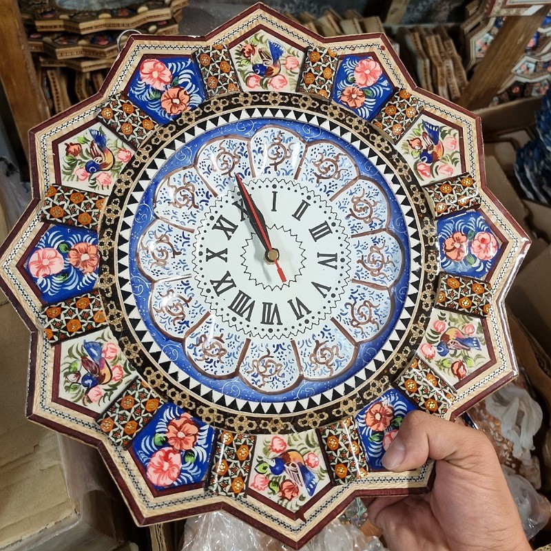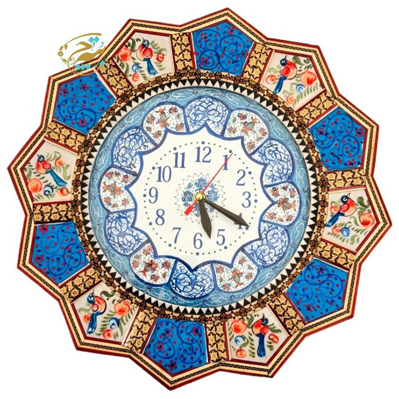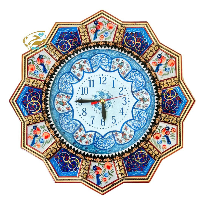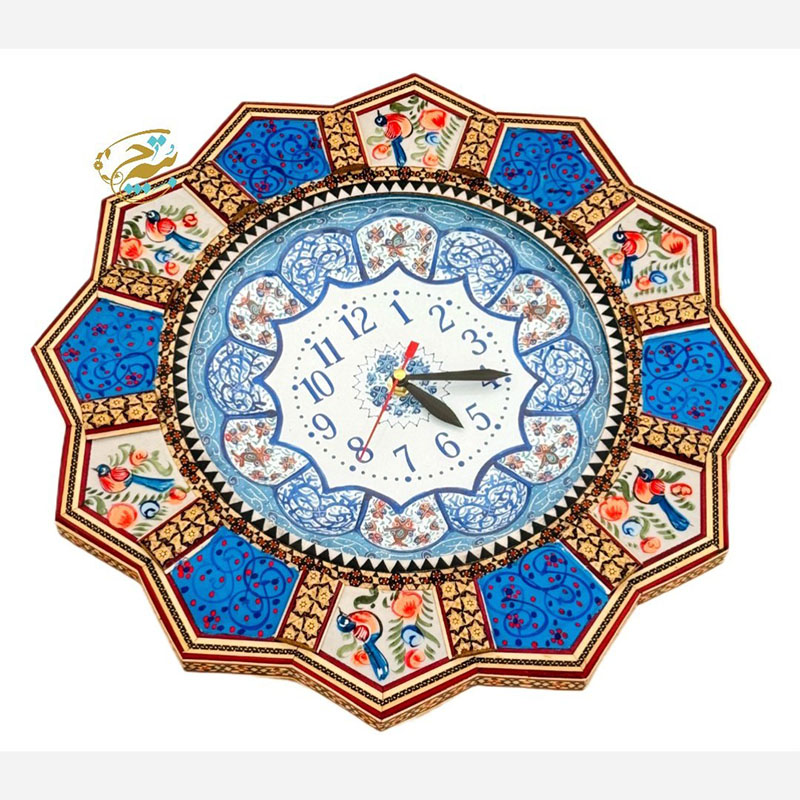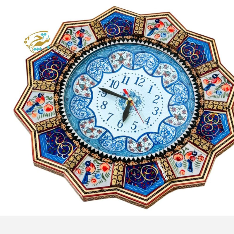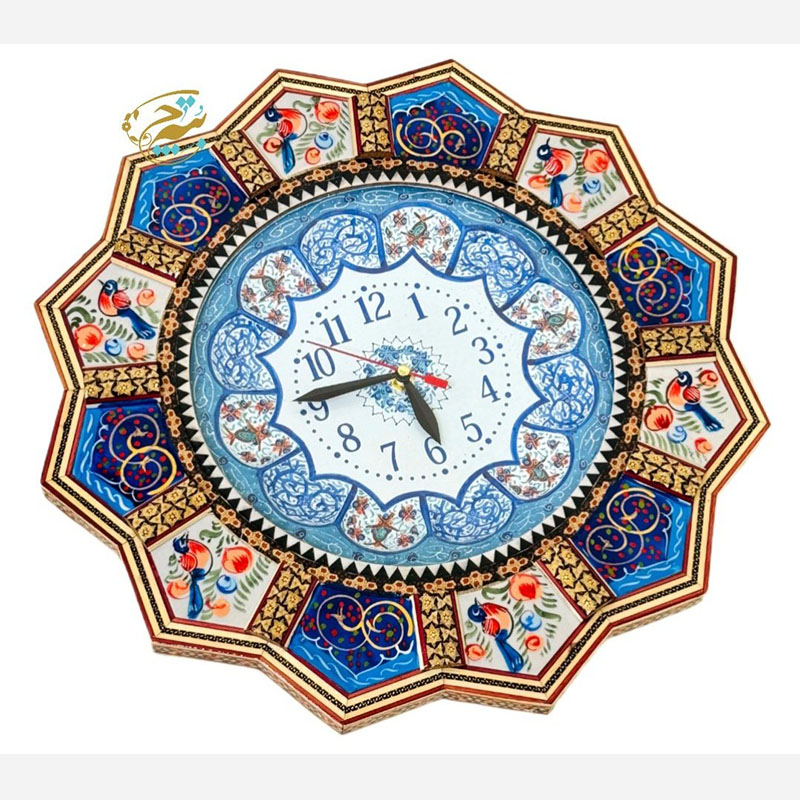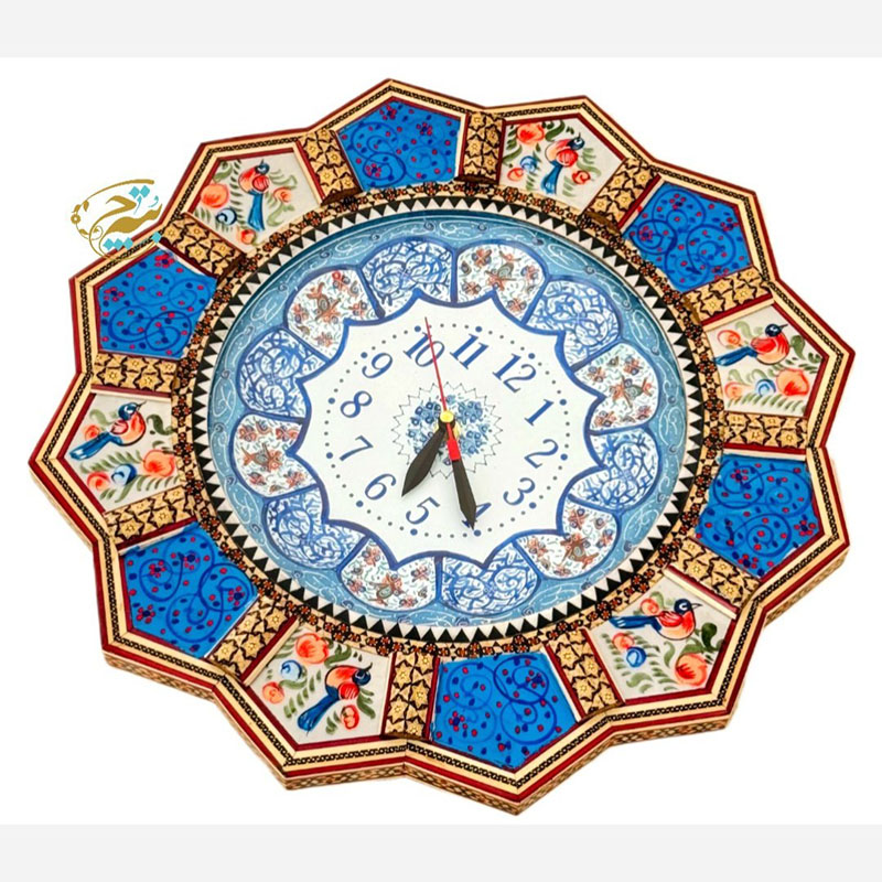 ساعت خاتم کاری گل و مرغ آبی با صفحه میناکاری42سانتی