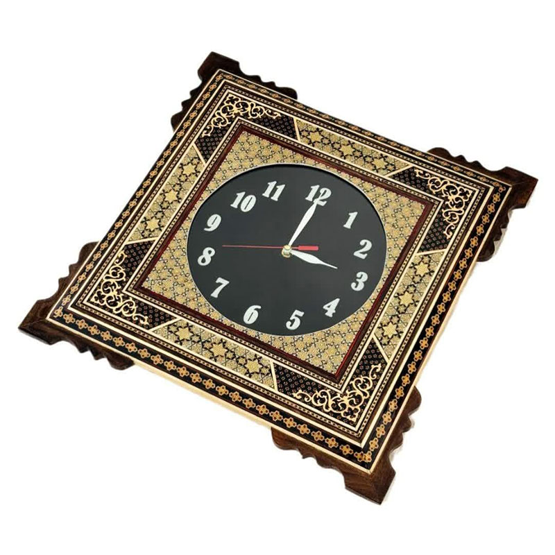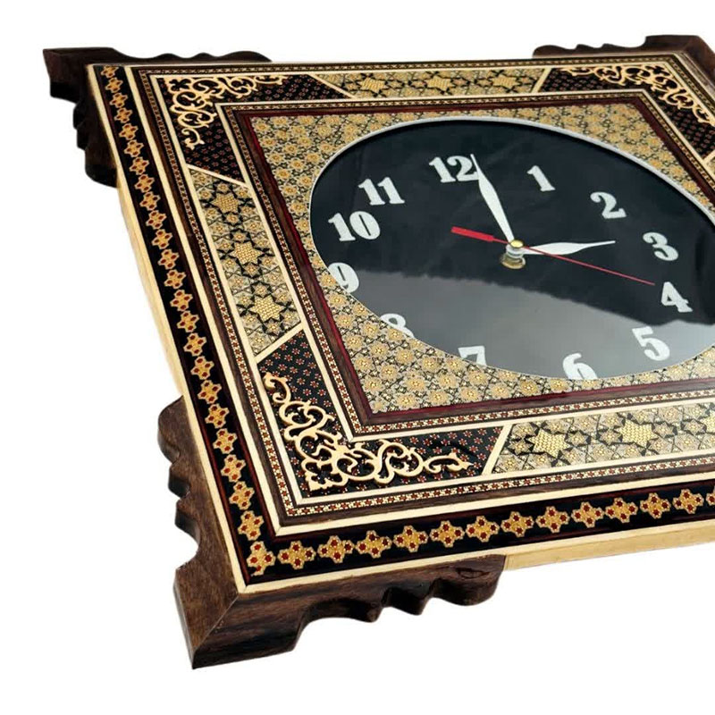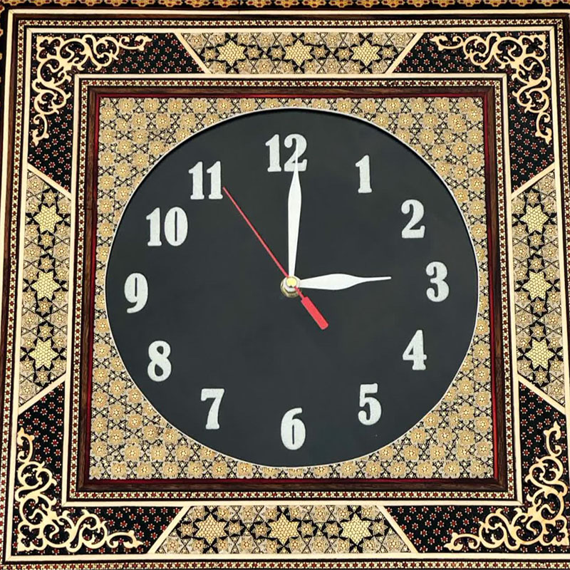 ✅ساعت های خاتم کاری صفحه مشکی دید بهتری نسبت به ساعت های صفحه میناکاری دارند چرا که نقش و نگار های میناکاری خطای بینایی را برای استفاده از ساعت بیشتر میکنند. ✅قیمت ساعت های دیواری صنایع دستی با توجه به عوامل چون کیفیت موتور ساعت ، نوع خاتم بکار رفته در قاب و بدنه ساعت ، کیفیت و نوع صفحه استفاده شده ( صفحه میناکاری یا صفحه جیر ) و کیفیت و زیبایی نقاشی مینیاتور کار شده در قاب ساعت ها ، داشتن محافظ موتور در پشت ساعت ، بستگی دارد . ✅مجموعه ساعت های دیواری خاتم با صفحه میناکاری و صفحه های قلمزنی در طرح ها ، نقش ها و مدل های متنوع و در سطوح قیمتی مختلف با توجه به نیاز شما ارائه می گردد . ✅ ساعت های دیواری خاتم کاری و منبت کاری معمولا کاربرد های مختلف دارند و قابلیت استفاده در منازل ، ادارات ، دفاتر کار ، فروشگاهها و … دارند . ✅ با توجه به اینکه در معرض دید خوبی قرار می گیرند و نمای خوبی ایجاد می کند بسیار مناسب برای هدایای تبلیغاتی هستند خصوصا آنکه قابلیت نصب آرم و لوگو و نام سازمان شما بر روی قاب ساعت یا صفحه داخلی آن وجود دارد که تبلیغ کننده خوبی برای کسب و کار شماست .