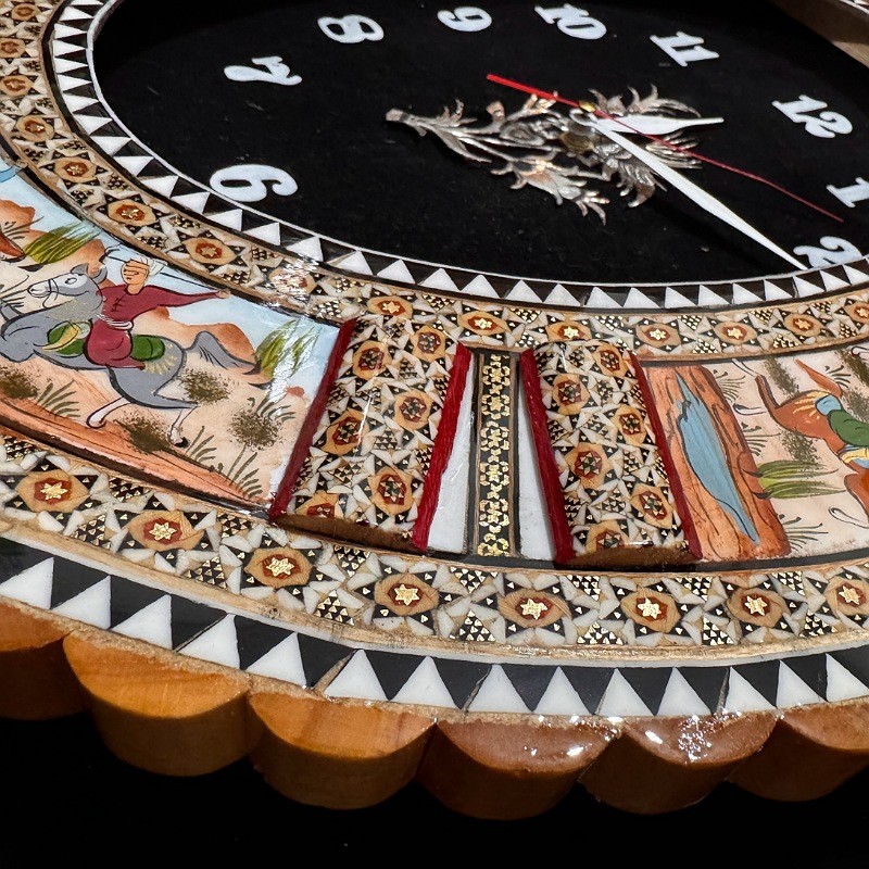 ✅ساعت های خاتم کاری صفحه مشکی دید بهتری نسبت به ساعت های صفحه میناکاری دارند چرا که نقش و نگار های میناکاری خطای بینایی را برای استفاده از ساعت بیشتر میکنند. ✅قیمت ساعت های دیواری صنایع دستی با توجه به عوامل چون کیفیت موتور ساعت ، نوع خاتم بکار رفته در قاب و بدنه ساعت ، کیفیت و نوع صفحه استفاده شده ( صفحه میناکاری یا صفحه جیر ) و کیفیت و زیبایی نقاشی مینیاتور کار شده در قاب ساعت ها ، داشتن محافظ موتور در پشت ساعت ، بستگی دارد . ✅مجموعه ساعت های دیواری خاتم با صفحه میناکاری و صفحه های قلمزنی در طرح ها ، نقش ها و مدل های متنوع و در سطوح قیمتی مختلف با توجه به نیاز شما ارائه می گردد . ✅ ساعت های دیواری خاتم کاری و منبت کاری معمولا کاربرد های مختلف دارند و قابلیت استفاده در منازل ، ادارات ، دفاتر کار ، فروشگاهها و … دارند . ✅ با توجه به اینکه در معرض دید خوبی قرار می گیرند و نمای خوبی ایجاد می کند بسیار مناسب برای هدایای تبلیغاتی هستند خصوصا آنکه قابلیت نصب آرم و لوگو و نام سازمان شما بر روی قاب ساعت یا صفحه داخلی آن وجود دارد که تبلیغ کننده خوبی برای کسب و کار شماست .