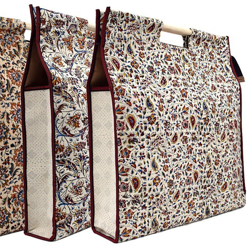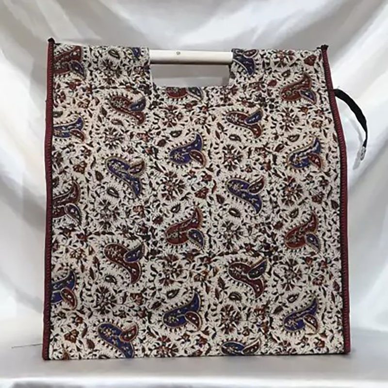در بین ساک های تبلیغاتی پارچه ای ،ساک قلمکار از جنس پارچه کتان و با چاپ دستی توسط مهر های چوبی و نقوش سنتی ایرانی تولید می گردد که در بازار هدایای تبلیغاتی مرسوم گشته است.
