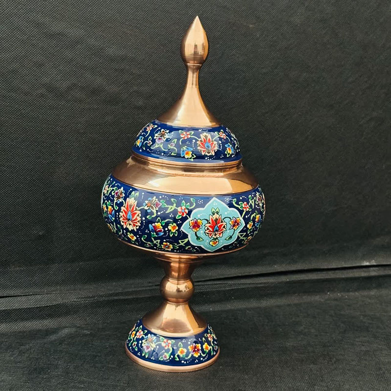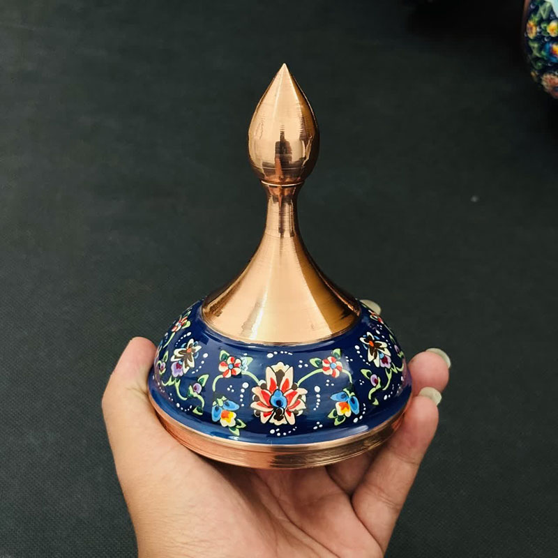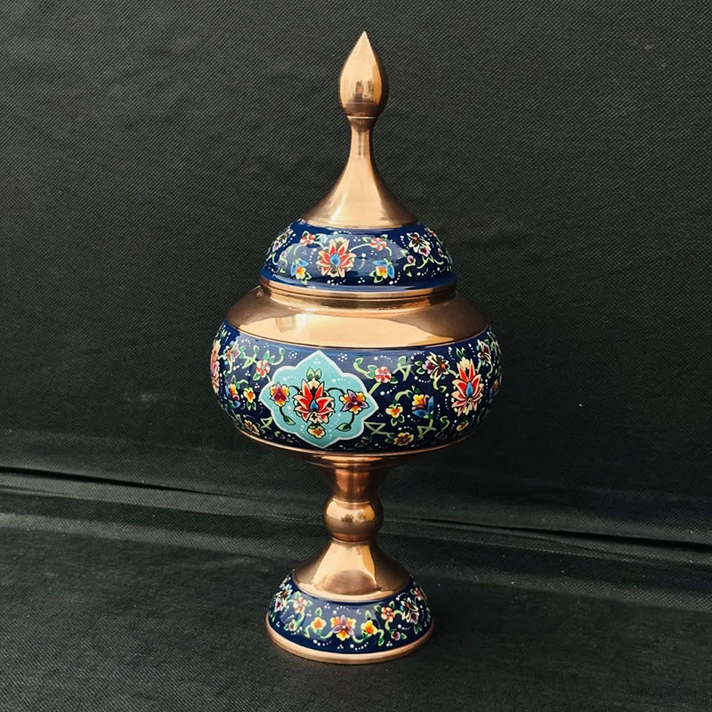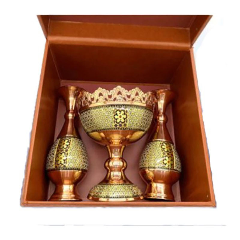 جنس ظروف مس و خاتم از فلز مس بوده که بر روی آن خاتم اصل اصفهان چسبانده شده است. استفاده از خاتم اعلا و متریال باکیفیت باعث افزایش طول عمر و ماندگاری فوق العاده در ظروف مس و خاتم شده است. سایز بندی ظروف مس و خاتم به شما امکان استفاده آنها را در چیدمان های مختلف خواهد داد. ظروف مس و خاتم برای زیباسازی فضاهای دکوری در نظر گرفته می شود. از این رو می تواند با دیگر محصولات دکوری ست گردد. محصولات مس و خاتم اصفهان از محصولات هنری صنایع دستی نفیس ایرانی بشمار می رود. فلز مس مورد استفاده در این محصولات ضخامت بالا و مناسبی دارد و به شکل نهایی محصول جلوه خاصی بخشیده است. این محصول دارای لایهای محافظ با پلیاستر است که علاوه بر پوششدهی مناسب سطح مس و جلوگیری از اکسید و سیاه شدن، مقاومت آن را نیز بالا برده است. بسیاری از شرکت ها و سازمان ها بمنظور تهیه هدایای تبلیغاتی سالیانه خود از محصولات مس و خاتم اصفهان استفاده می کنند. قبل از سفارش طرح مورد نظرتون رو استعلام بگیرید و با اطمینان خرید کنید.