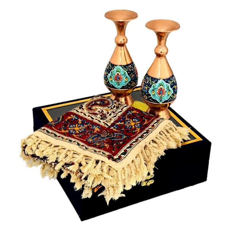 خانه / ست های هدیه ترکیبی / ست اداری رومیزی قلمکار و گلدان جفتی 20 سانتی مدل پرداز