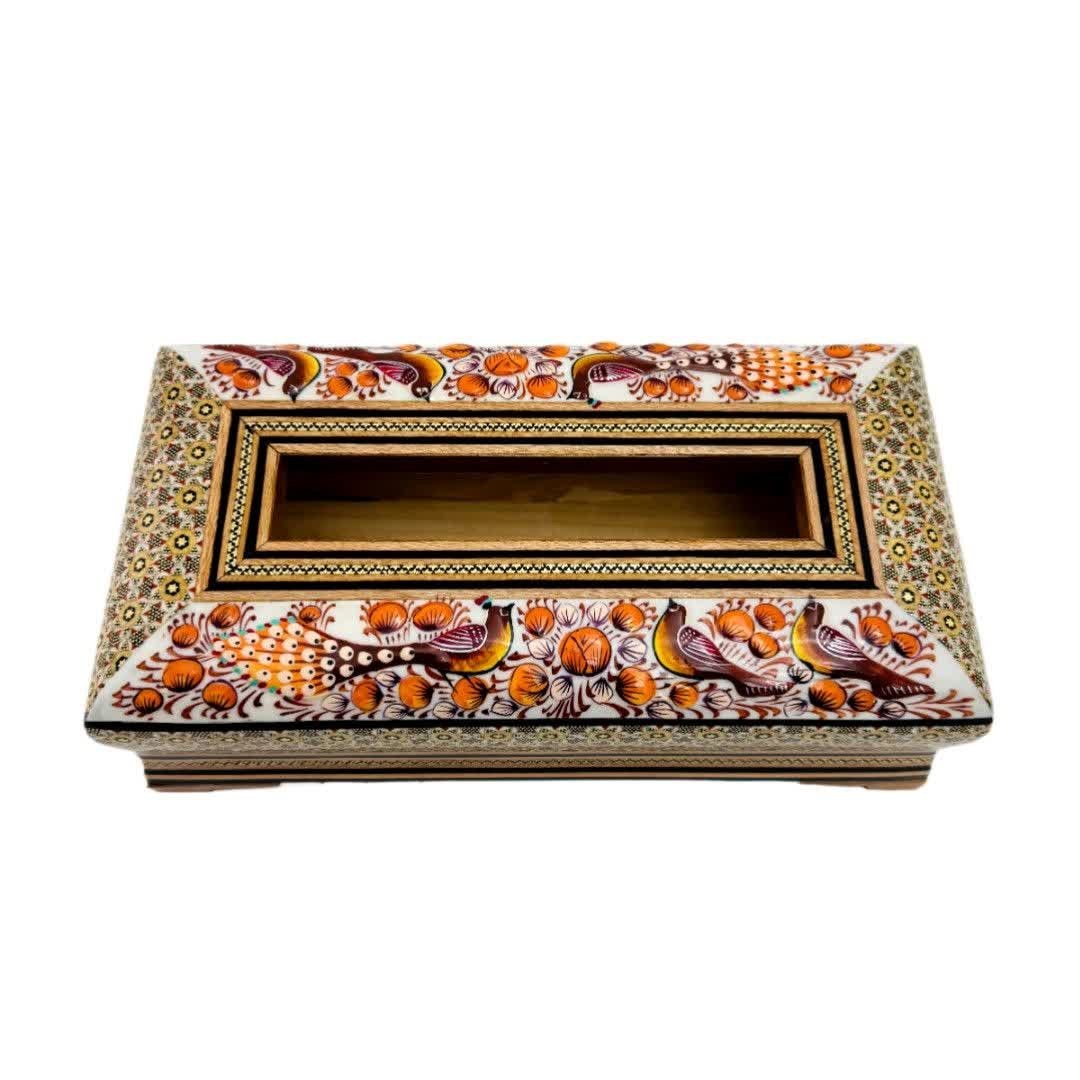 ❌ست سه تیکه کامل موجود است. ❌ ⚜️جعبه دستمال کاغذی خاتم اعلا اصفهان را می توان پرطرفدار ترین محصول صنایع دستی خاتم سازی اصفهان نام برد. شما می توانید برای زیباتر نشان دادن جعبه های دستمال کلینکس از جادستمال کاغذی خاتم کاری استفاده کنید. ⚜️جعبه دستمال خاتم کاری یکی از نمادهای هنر استادکاران خاتم ساز اصفهان است. جا دستمال خاتم کاری موردهای استفاده زیادی در منازل و دفاتر کار دارد.از این رو برای هدیه به دوستان و اقوام و یا حتی هدایای تبلیغاتی خاتم کاری صنایع دستی گزینه مناسبی است. ⚜️قیمت جعبه دستمال خاتم مناسب و خرید آن از سراسر کشور امکان پذیر است. هنر خاتم کاری اصفهان و خاتم کاری شیراز از شناخته شده ترین هنرهای دستی ایرانی محسوب می گردند که علاقه مندان زیادی در داخل و خارج کشور دارند. ⚜️جعبه دستمال خاتم کاری محصولی زیبا و چشم نواز تولید شده در صنایع دستی بُته چی ⚜️جا دستمالی خاتم یکی دیگر از زیباترین محصولات خاتم کاری در بازار است. ⚜️این محصول دارای وزن ۵۱۰ گرم بوده و در اندازه ۱۰*۱۴*۲۶ سانتی متر تولید شده است. ⚜️جنس این جادستمال کاغذی از چوب بوده که همانگونه که در تصویر نیز مشاهده میکنید از هنر خاتم کاری برای تزیین آن استفاده شده است. ⚜️ درب این جادستمال کاغذی به صورت کشویی است. ⚜️ترکیب رنگ های مختلف به کار رفته در ساخت این محصول سبب شده تا یکی از بهترین محصولات چوبی و خاتم در بازار به شمار برود.