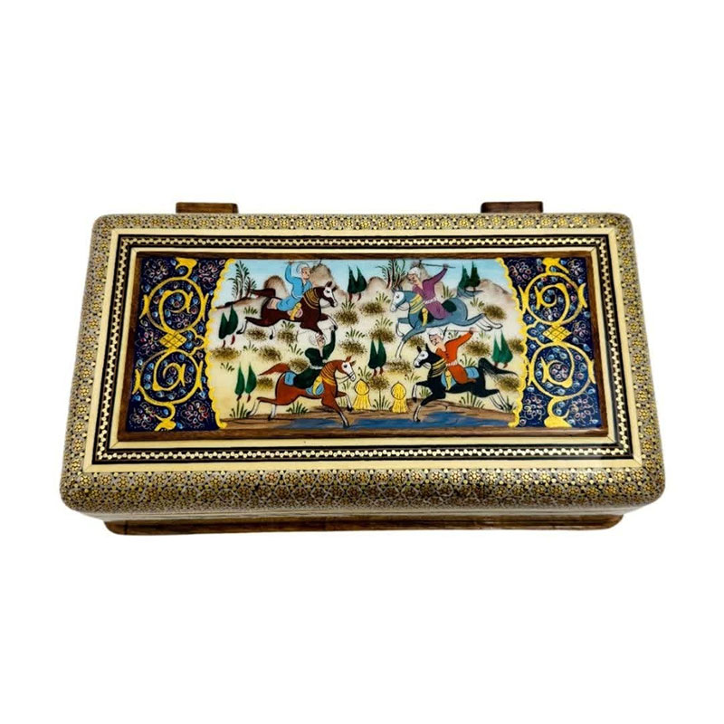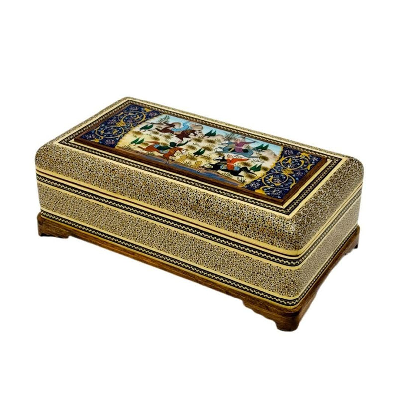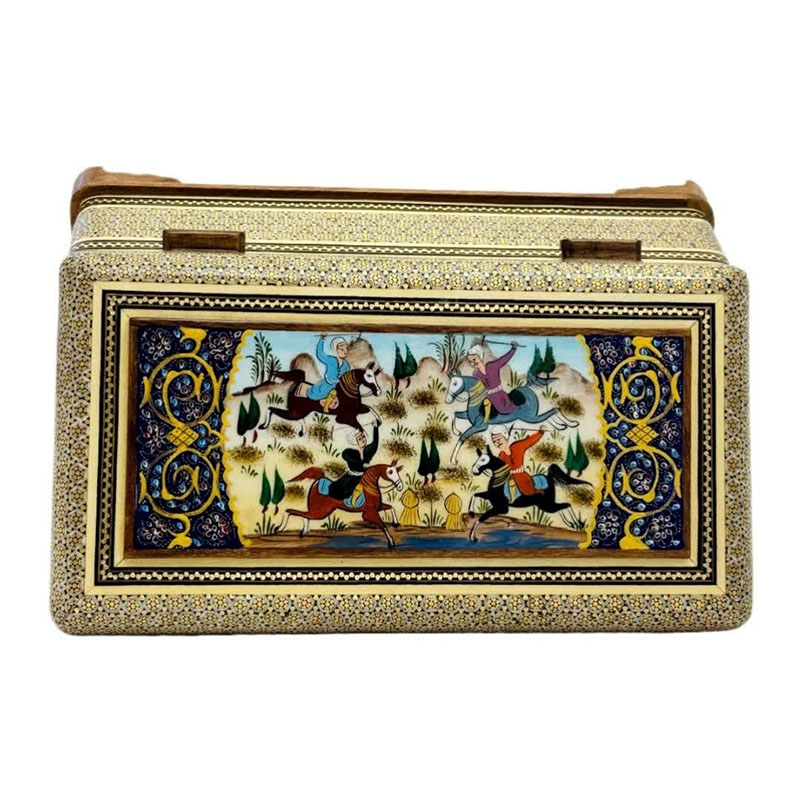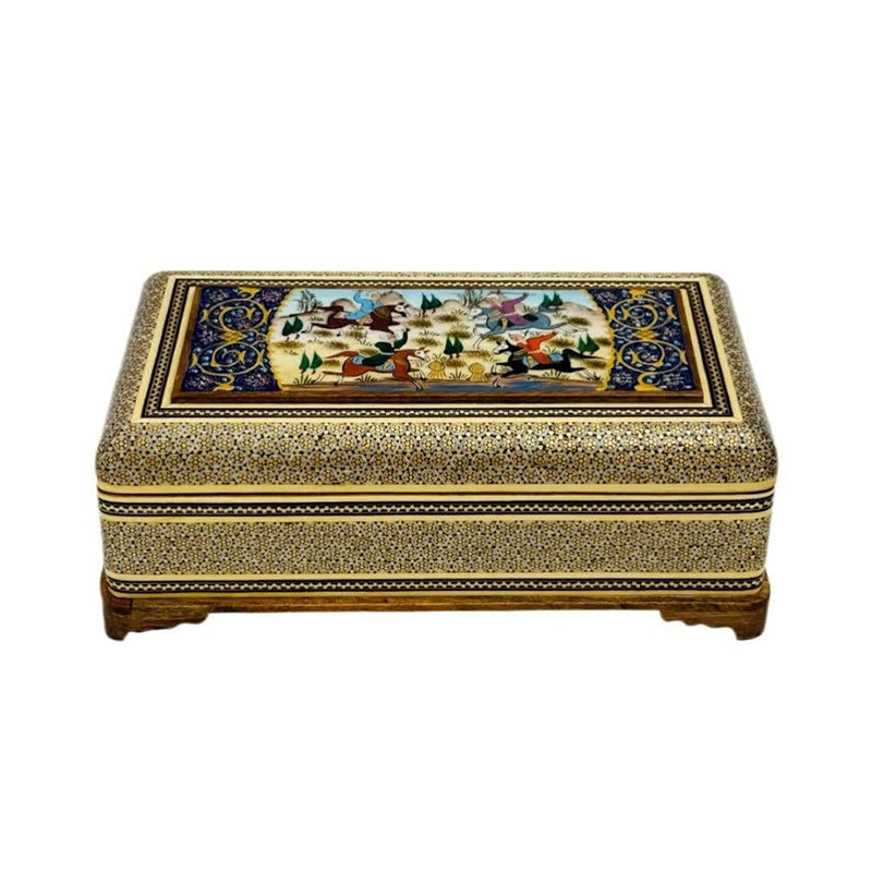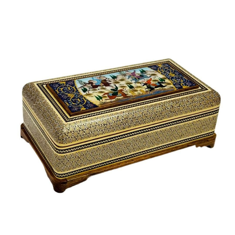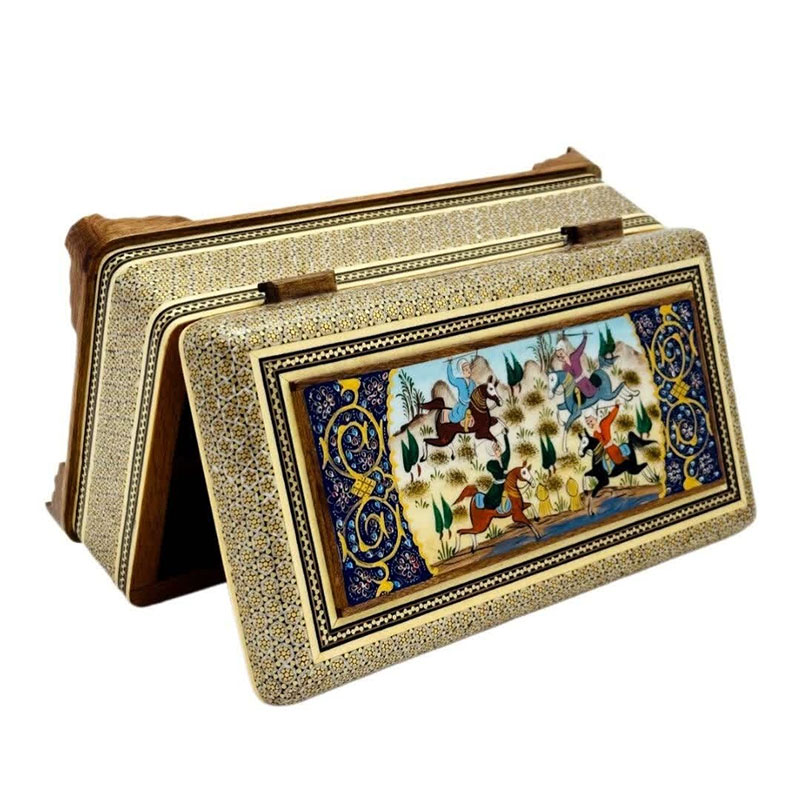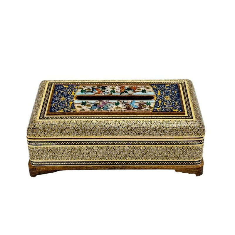 ⚜️ست جعبه دستمال کاغذی و جاکاردی اصفهان را می توان پرطرفدار ترین محصول صنایع دستی خاتم سازی اصفهان نام برد. شما می توانید برای زیباتر نشان دادن جعبه های دستمال کلینکس از جادستمال کاغذی خاتم کاری استفاده کنید. ⚜️جعبه دستمال خاتم کاری یکی از نمادهای هنر استادکاران خاتم ساز اصفهان است. جا دستمال خاتم کاری موردهای استفاده زیادی در منازل و دفاتر کار دارد.از این رو برای هدیه به دوستان و اقوام و یا حتی هدایای تبلیغاتی خاتم کاری صنایع دستی گزینه مناسبی است. ⚜️قیمت جعبه دستمال خاتم مناسب و خرید آن از سراسر کشور امکان پذیر است. هنر خاتم کاری اصفهان و خاتم کاری شیراز از شناخته شده ترین هنرهای دستی ایرانی محسوب می گردند که علاقه مندان زیادی در داخل و خارج کشور دارند.