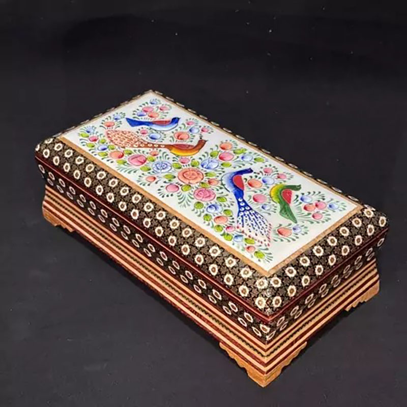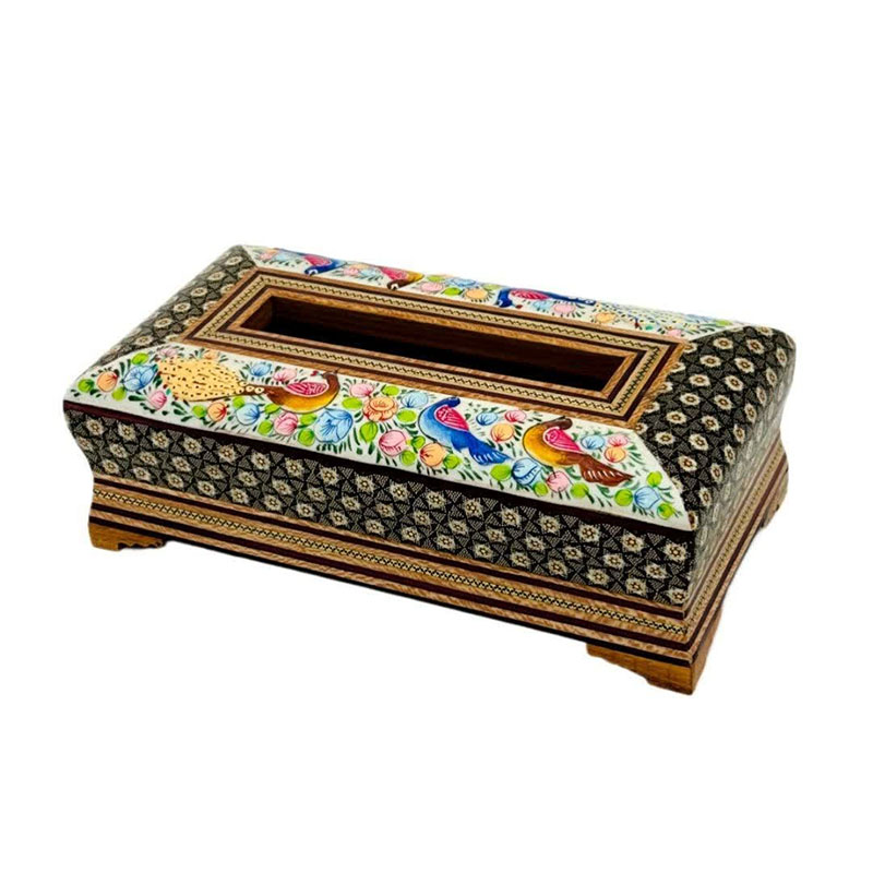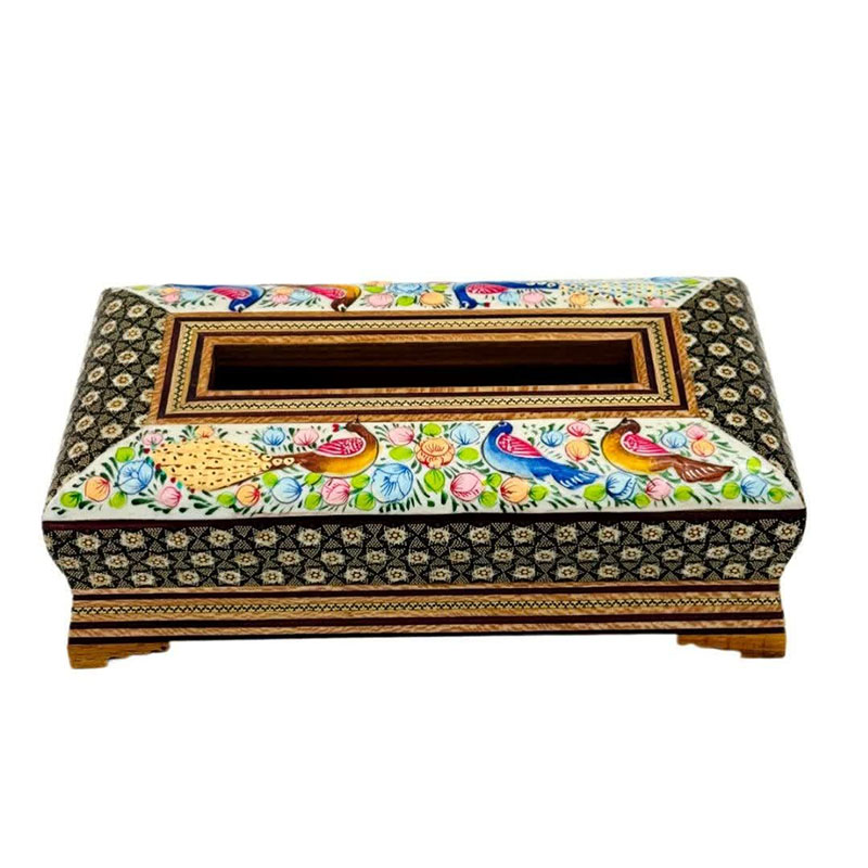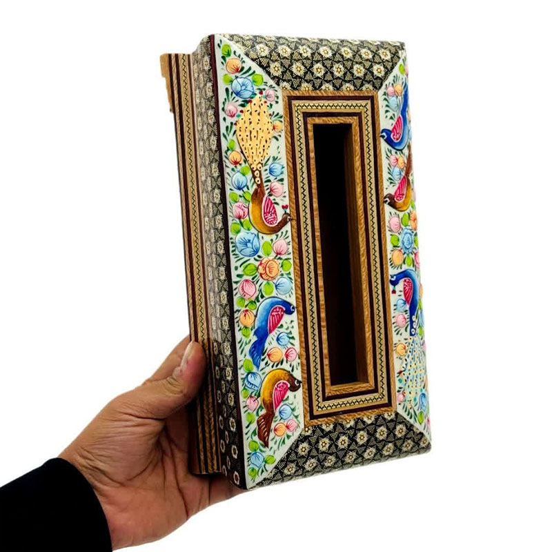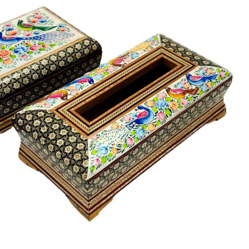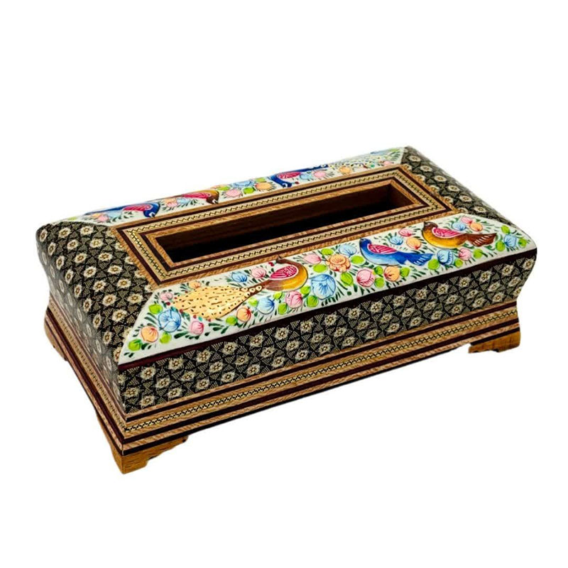 ست جعبه دستمال کاغذی و جاکاردی خاتم کاری مدل گل و مرغ اعلا