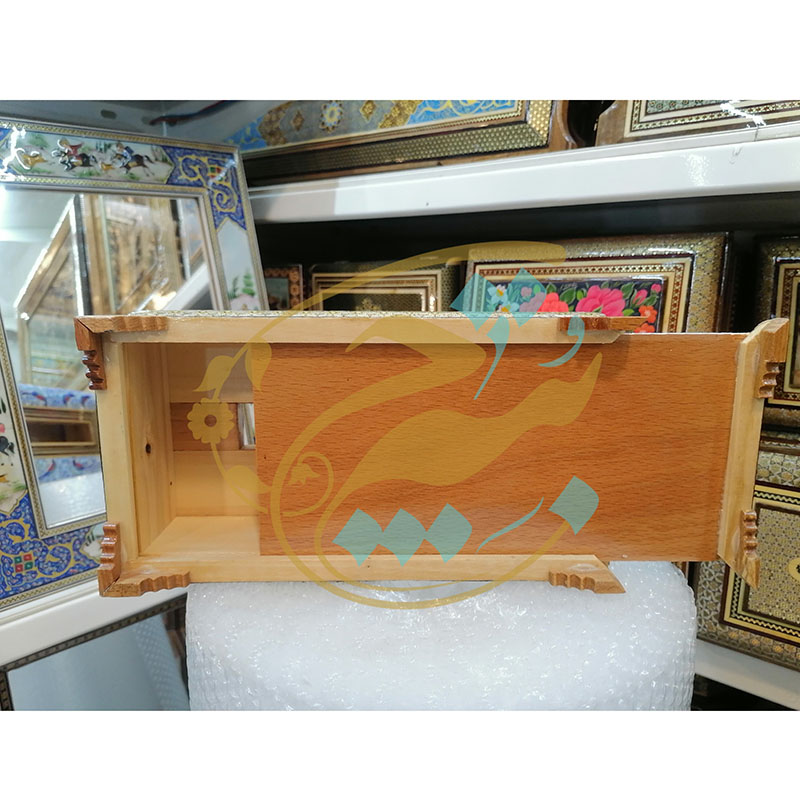 جعبه دستمال کاغذی خاتم کاری تذهیب طرح پره وارو
